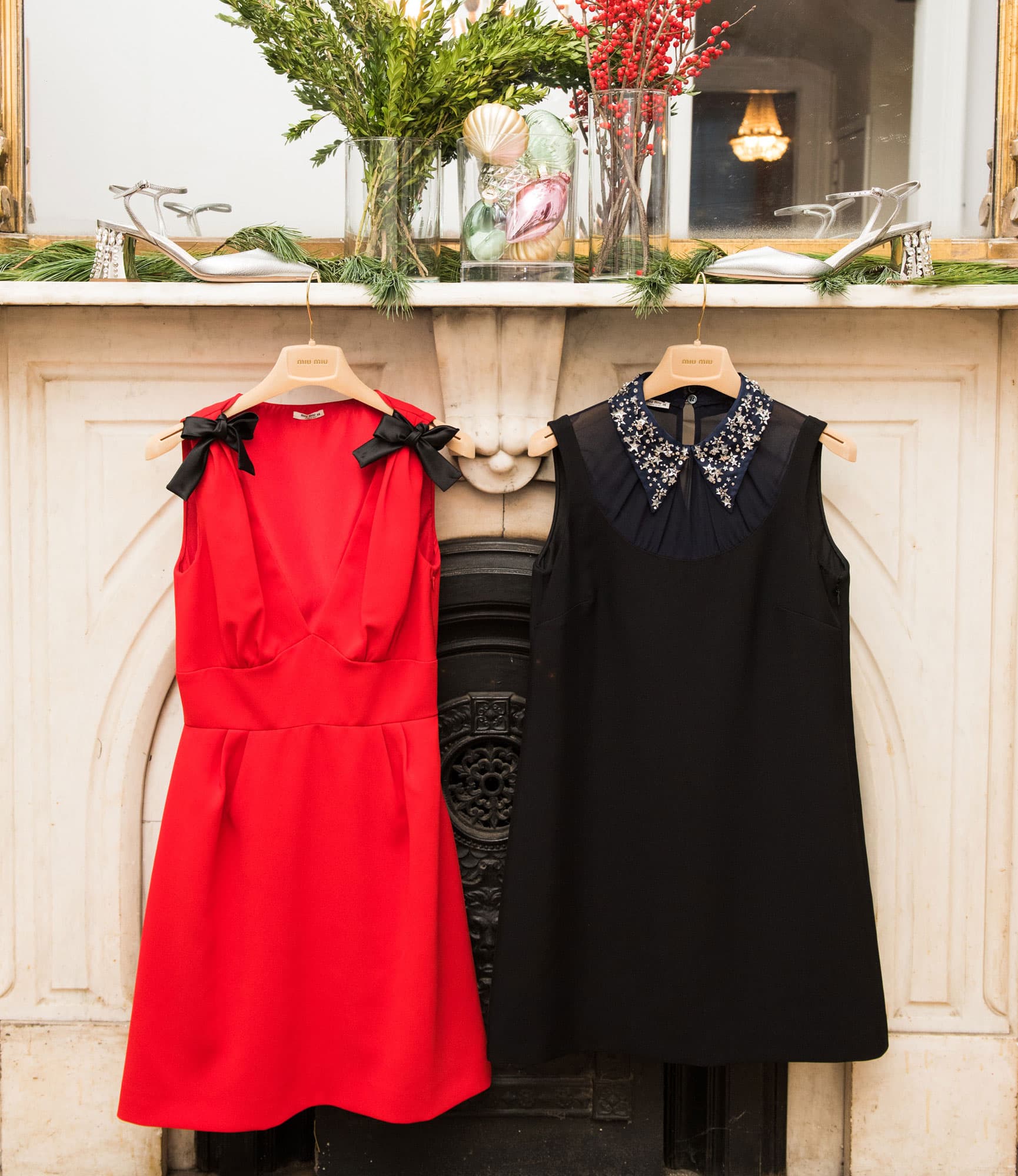 At this point, hanging a cherry-red cocktail dress (with shiny black bows and an embellished collar, respectively) from the fireplace is just second nature to us. And besides—we’re pretty sure this is the ideal solution to ensuring those holiday party outfit backups are put to excellent use.At this point, hanging a cherry-red cocktail dress (with shiny black bows and an embellished collar, respectively) from the fireplace is just second nature to us. And besides—we’re pretty sure this is the ideal solution to ensuring those holiday party outfit backups are put to excellent use.