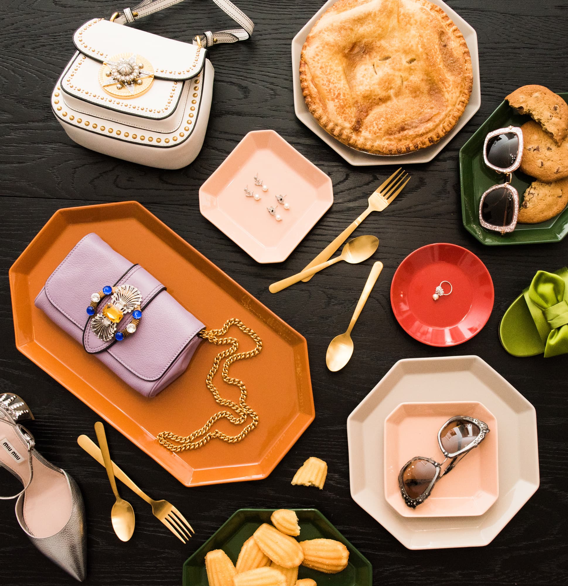 With all of the above in mind, it was only natural that this year, when it came time to consider decorating, we thought: shoes. And bags. And jewelry. And…well, you get the rest. It’s the most wonderful, sparkly time of the year—so what’s better than a blindingly blingy Miu Miu pump to sit atop our tree? Here’s how we’re decking the halls and doing every holiday decorating opportunity a little differently this year…(in a way we’re pretty sure those who don’t celebrate can appreciate, too).
