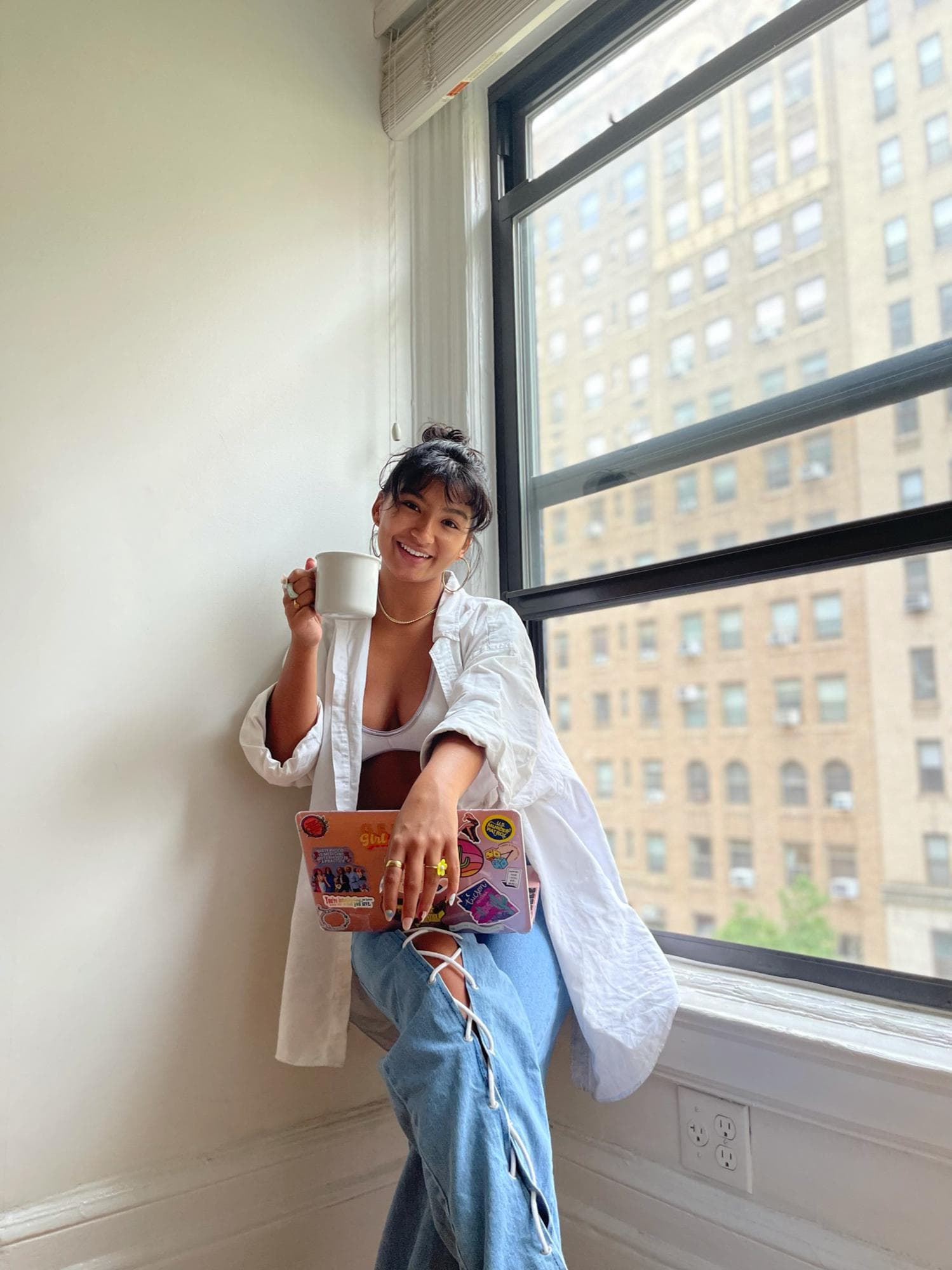 "I am trained as a community organizer and I got my start organizing around sex education at a school board level and did that work all throughout high school," Foxx tells Coveteur of her powerful career beginnings. "When I got into Columbia, I moved from Tucson, Arizona where I was born and raised, across the country all by myself. I'm the first in my family to go to college, so I really had to rethink what community meant to me. Until then, it had always been the people who lived around me as those were the folks I shared experiences with and who I was often mobilizing with toward these change-making actions. But as I got to Columbia, I looked around and realized that in so many ways the people that lived around me didn't share my experiences." So Foxx moved online where she found the company of femmes and young women like herself and built a new community of her own there. Thus, GenZ Girl Gang was born and the rest is history.