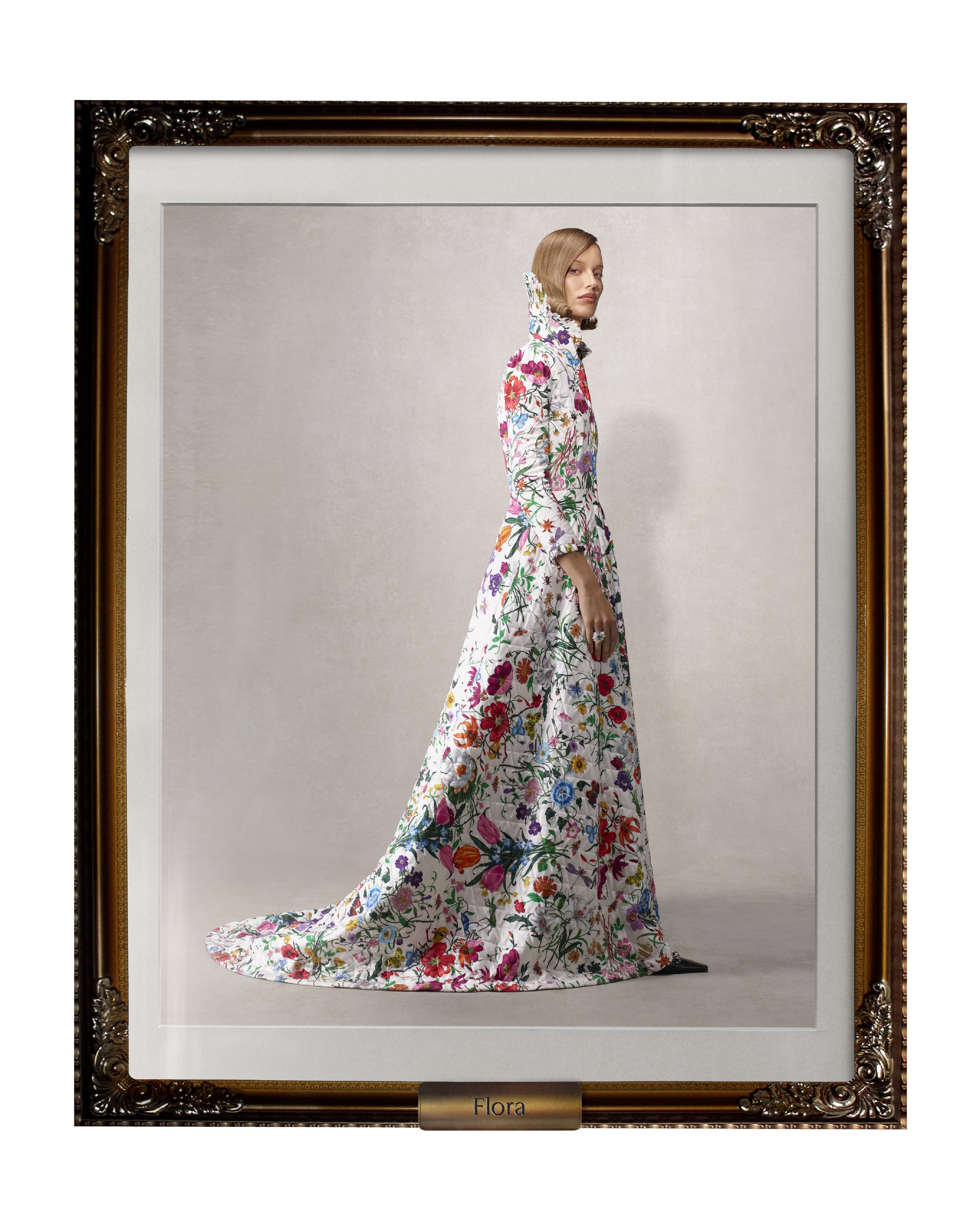 The rollout began with a surprise lookbook, which dropped the day before the scheduled "show" in Milan, and was a catalogue portraying all of the Gucci archetypes through Demna's eyes. Alex Consani posed in a crowd favorite look, "La Bomba," which featured an animal print fur coat, a pair of black stilettos, and not much else. Elsewhere, traditional Gucci codes were fused with Demna-isms. There were Gucci flora-like prints turned into gowns with exaggerated proportions and high collars, the Jackie bag is reissued in a soft, slouchy leather instead of it's classic, stiff leather construction. Meanwhile, odes to Tom Ford's era at the house came via slinky sequin tank tops and speedo swim trunks. Everything carried the same feeling that Demna evokes so well when he is building a world. Is he poking fun? Being ironic? Or is it just on-the-nose?