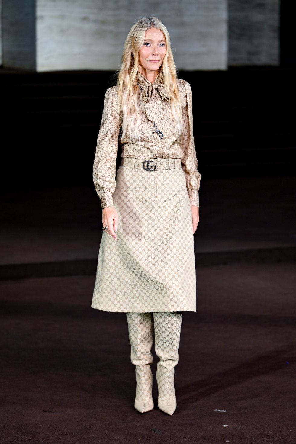 Then came the premiere of the Spike Jonze and Halima Reijn directed short, The Tiger, starring Demi Moore and plenty of other stars like Elliot Page, Keke Palmer, Edward Norton, Alia Shawkat, Ed Harris, Kendall Jenner, Alex Consani, and more. At the premiere at Milan’s Palazzo Mezzanotte—transformed with a brown-carpeted cinema and arrivals runway—the film cast and look book models arrived to a sea of photographers, turning the entrance into a live runway for the collection. Gwyneth Paltrow was there in a Gucci Monogrammed two piece, Consani arrived in her "La Bomba" look and persona, and Demi Moore showed up just in time for the film to begin in a gold sequin gown that she wears in the opening scene of the short.