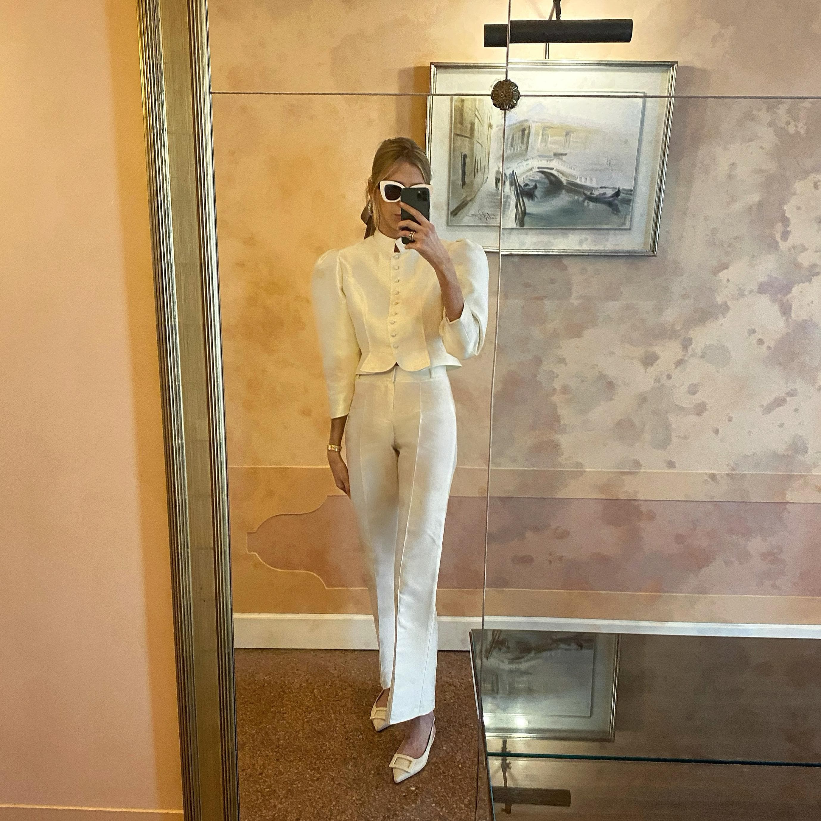 Photo: Courtesy of Geraldine Guyot“I wore this suit [ahead of] my wedding and every time I'm in it, I’m reminded of that special time. The outfit came together in a very natural and spontaneous way. This was, to me, the perfect look for the perfect day (and also meant to be since my DESTREE ready-to-wear collection came out just a few days later).”