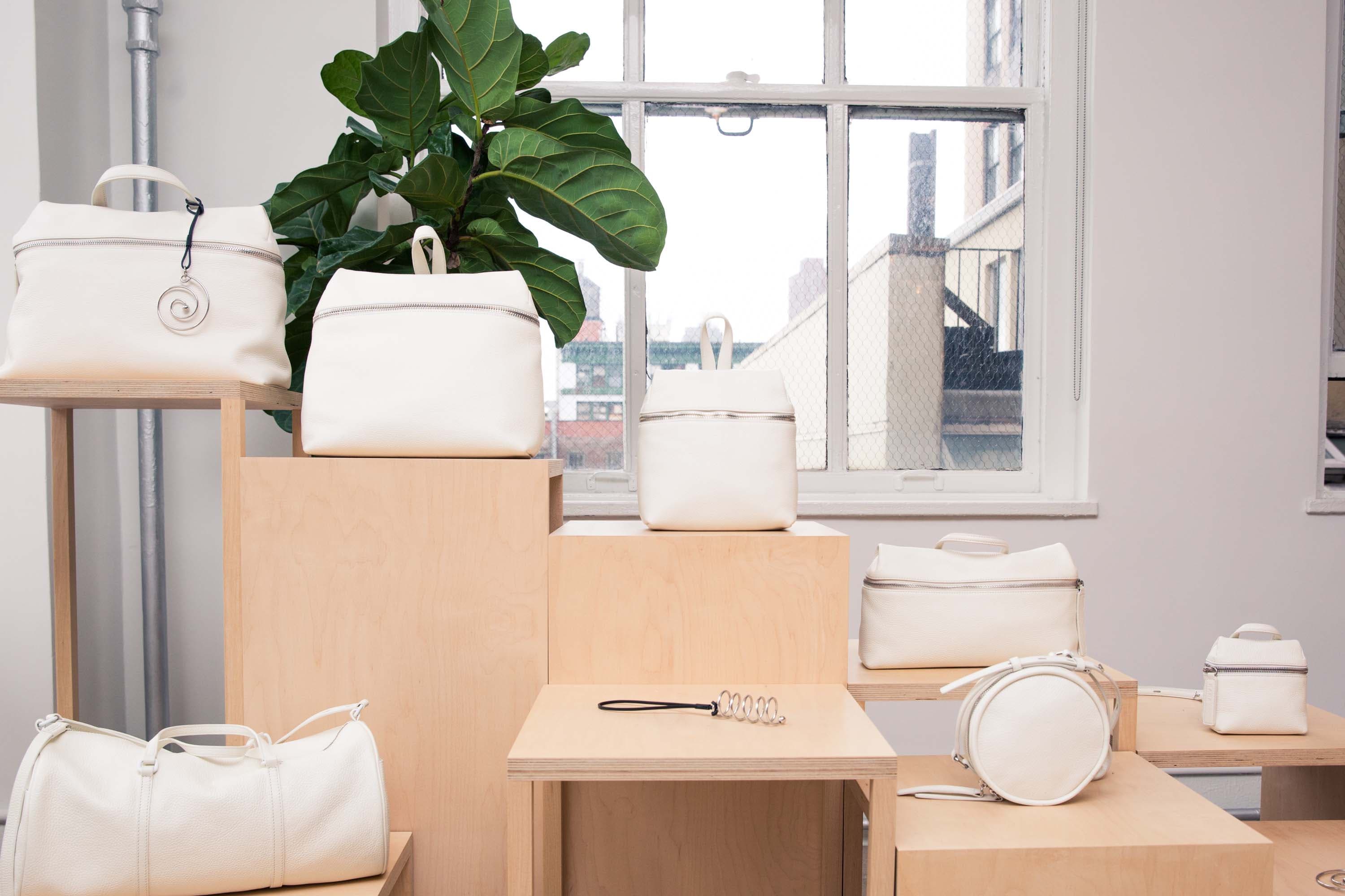 “I was so interested in making a brand and bags that felt like they weren’t covered in hardware or logos,” she explains. “I also liked the idea of a very active person, so the backpack and the other style that I designed—the dry bag, which was based off of an outdoor sporting-goods bag—had these references to the outdoors and active kind of thing.”