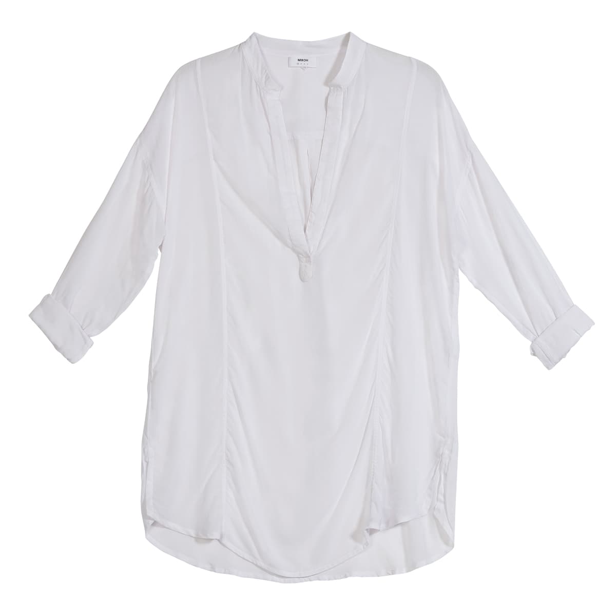 OM: “Even though we spend the holidays in the tropics, I always find a way to incorporate a bit of cheer into my wardrobe in honor of my favorite season. You can never go wrong with adding some metallics, festive colors, embroidery, or nods of what you would be wearing in the colder parts of the world. I tend to go for reds, dark greens, and warm whites from our collection in the sweeter, more feminine styles like the Loihi Bandeau Top or the Nusa Dua Top. These work perfectly layered under an easy throw-on style like our Cannes Tunic.”