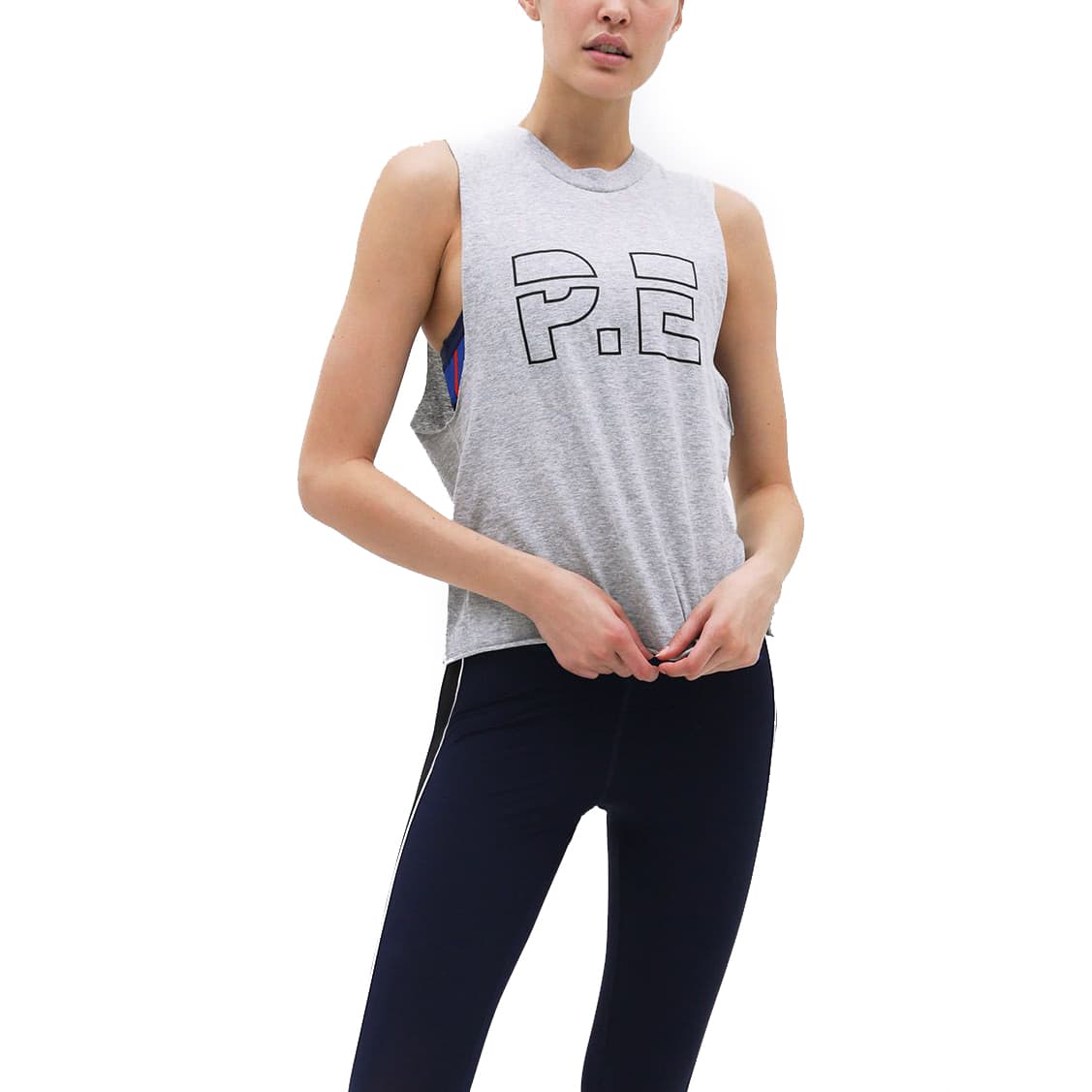 CT: “Depending on the occasion, some kind of French linen from MamaPapa, or if I’m running around with the kids, something casual and comfortable like the P.E Nation Throw in the Towel Tank with the Riseball Legging.”