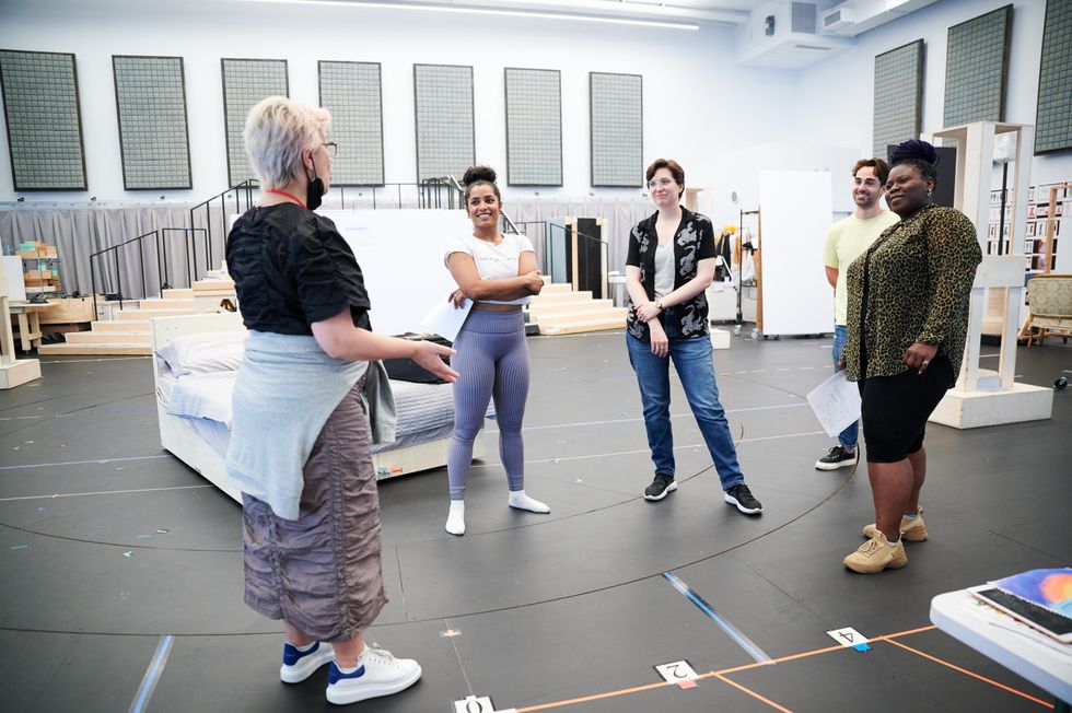 Anna D. Shapiro (left) at rehearsal with the 'The Devil Wears Prada: The Musical' cast.