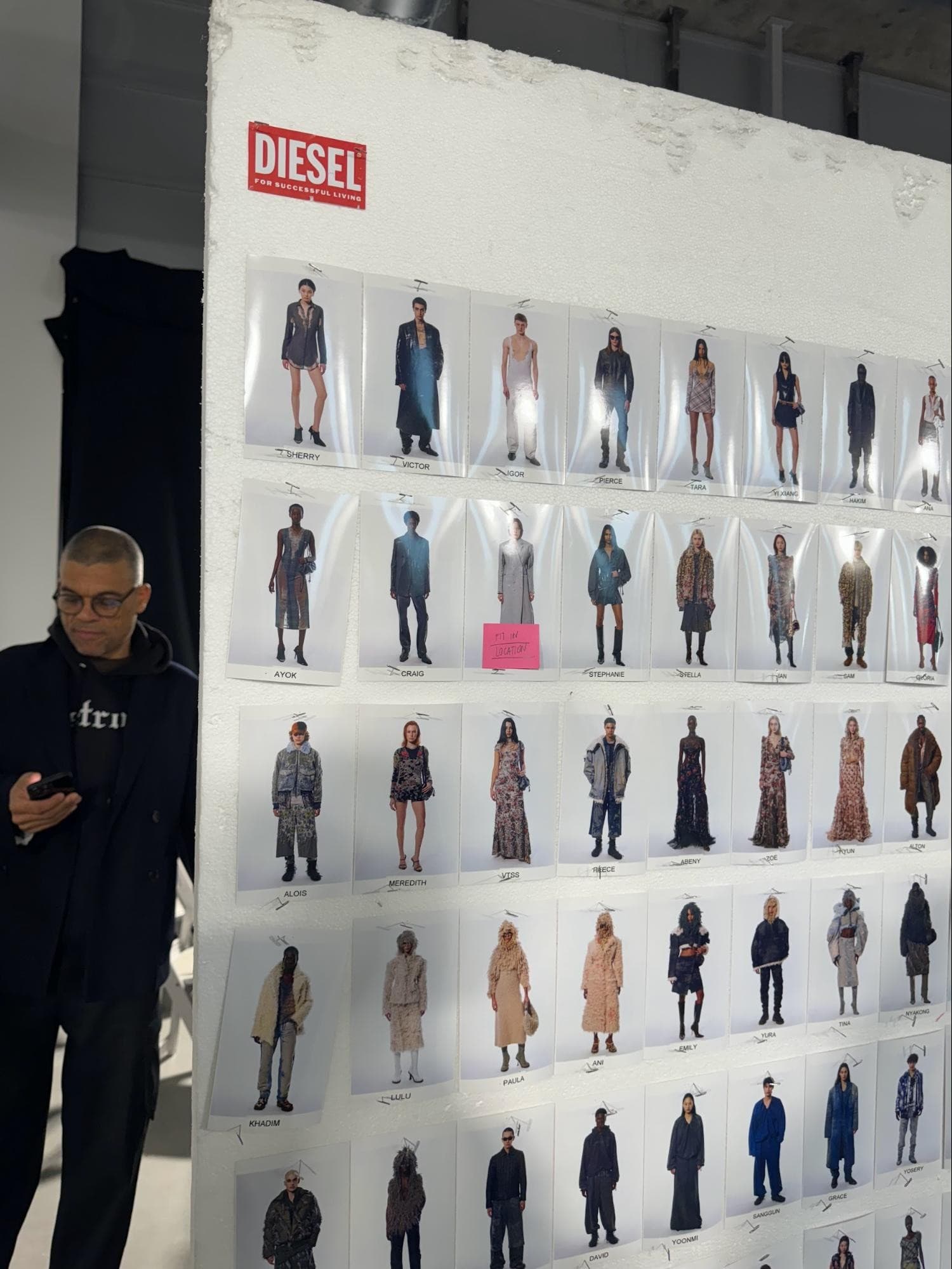 9:30 AM: After hair & makeup, I headed over to the board with all the looks on it. It was so fun to see the rest of the collection and what models were wearing what. Glenn and the entire Diesel team are such creative geniuses. The whole day I was in awe.