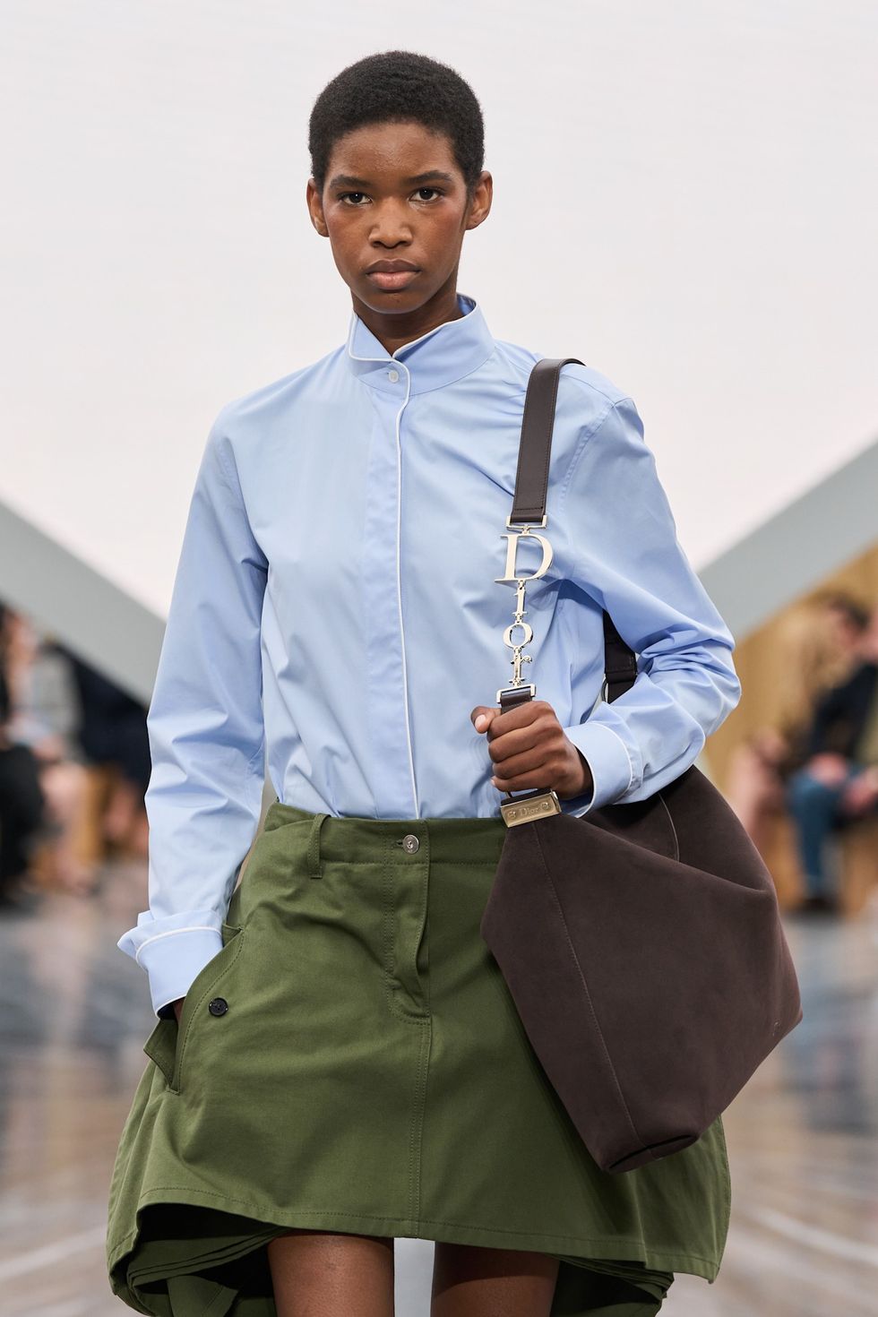 Debuted during Dior's Spring/Summer 2026 show in Paris, Jonathan Anderson's first collection for the house, models galavanted down the runway with the bag, in both sizes and both tan and chocolate brown suedes, in varying looks to showcase the bags versatility: mini dresses for the perfect sunny spring day, trousers and tops with built-in scarves for a day in an air conditioned office, and more. Now, the shape is available in the delicate chocolate brown, camel, and tan suede presented in Paris, as well as in a black soft leather punctured with graphic lines. Overall, the Diorly bag makes a case for effortless elegance in modern fashion.