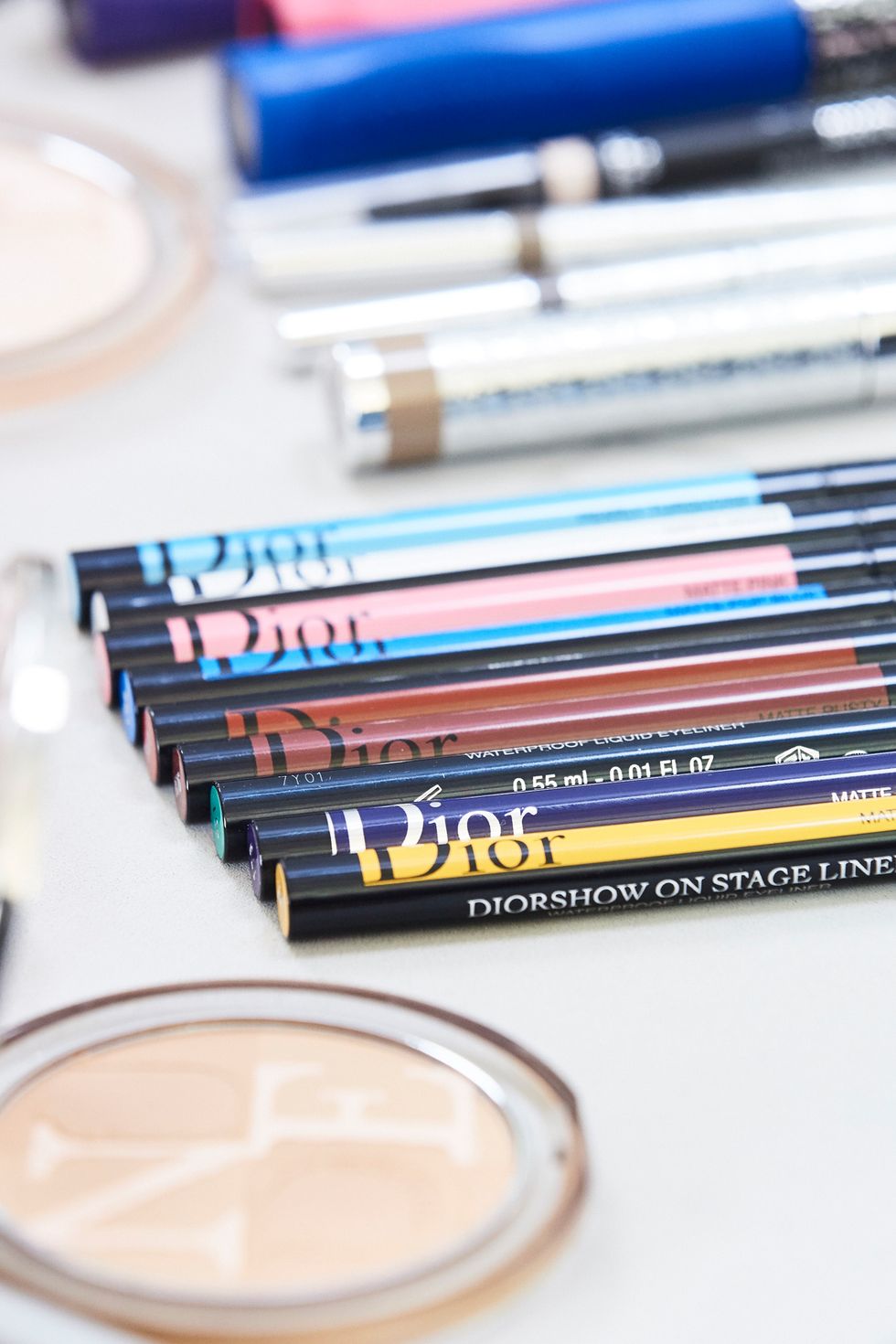 All the models wore peak caps by Stephen Jones and oversized sunglasses. Makeup artist Peter Philips matched the liner with the eyewear using Diorshow On Stage Liner—a new series of brightly hued liners—while keeping the faces fresh and bare. Hairstylist Guido kept the hair smooth under the hats.