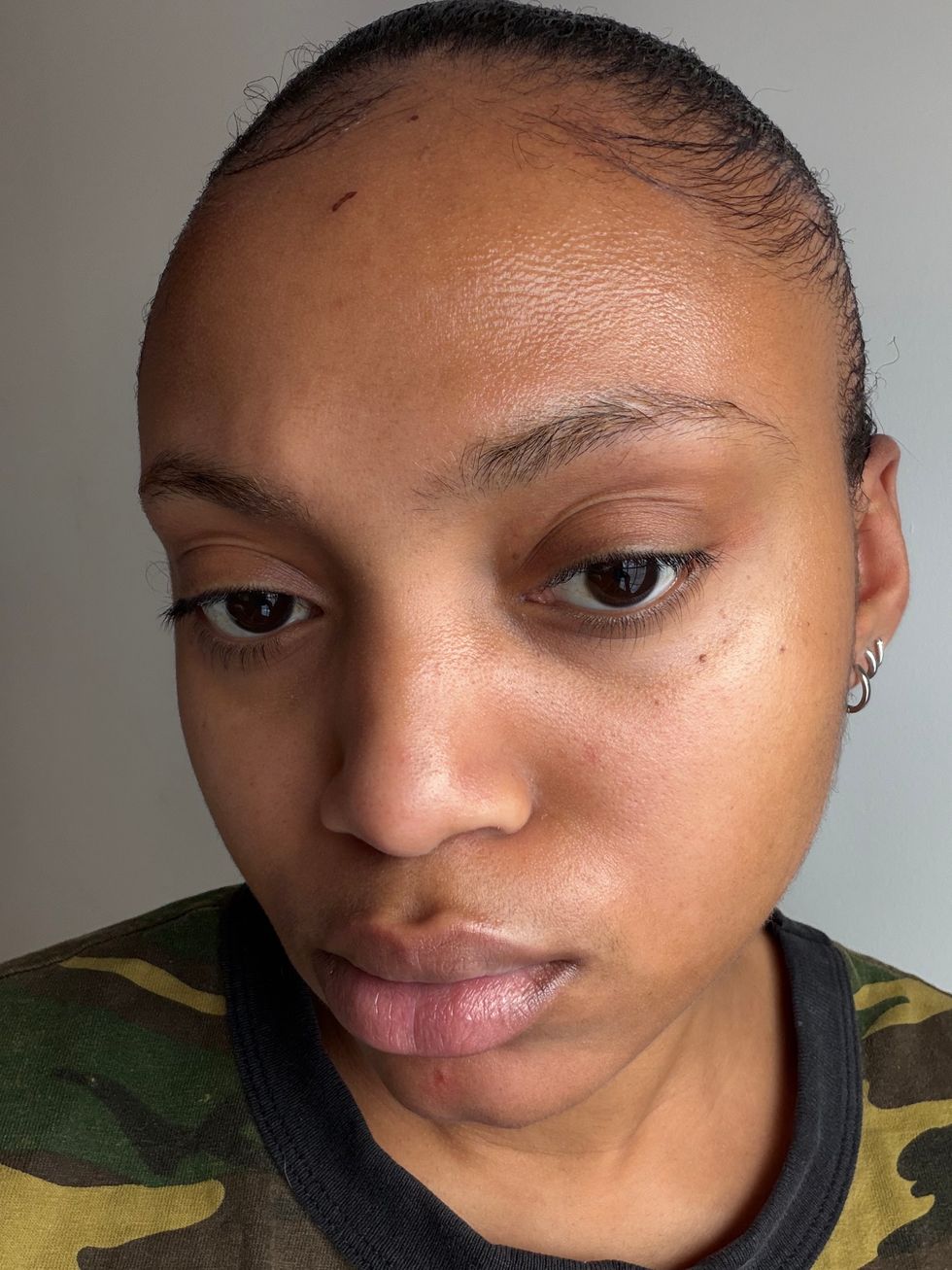 I've said it on here once (or ten plus times at this point) and I'll keep saying it again: my skin is dry, there's no two ways about it. Sure, the level of dryness differentiates slightly depending on the season, but it's dry year round—I even still use a heavy cream throughout a humid New York City summer. My skin can also be reactive and redness will sprout up when it's unhappy with a certain ingredient or isn't at the level of hydration necessary for it to look and act its very best. There are some other things to note as they pertain to makeup coverage: I have a pesky broken blood vessel on my cheek that has yet to be dealt with properly with a laser so, for now, I like makeup that does a good job of covering it up. Also, a stubborn keloid scar (from anxiously picking at a pimple—lesson very much learned) on my chin that has stood the test of time against countless corticosteroid injections. Texture is, of course, more difficult to disguise than discoloration, but I do like when my foundation blends it in a tiny bit more than it would be if I were makeup-less. Lastly, as someone who constantly wakes up with new mysterious scratches on various parts of my body at the hands of either my dog Jimi Hendrix or me (for whatever reason), I recently woke up with a noticeable scabby scratch right in the center of my forehead—truly the worst location imaginable.