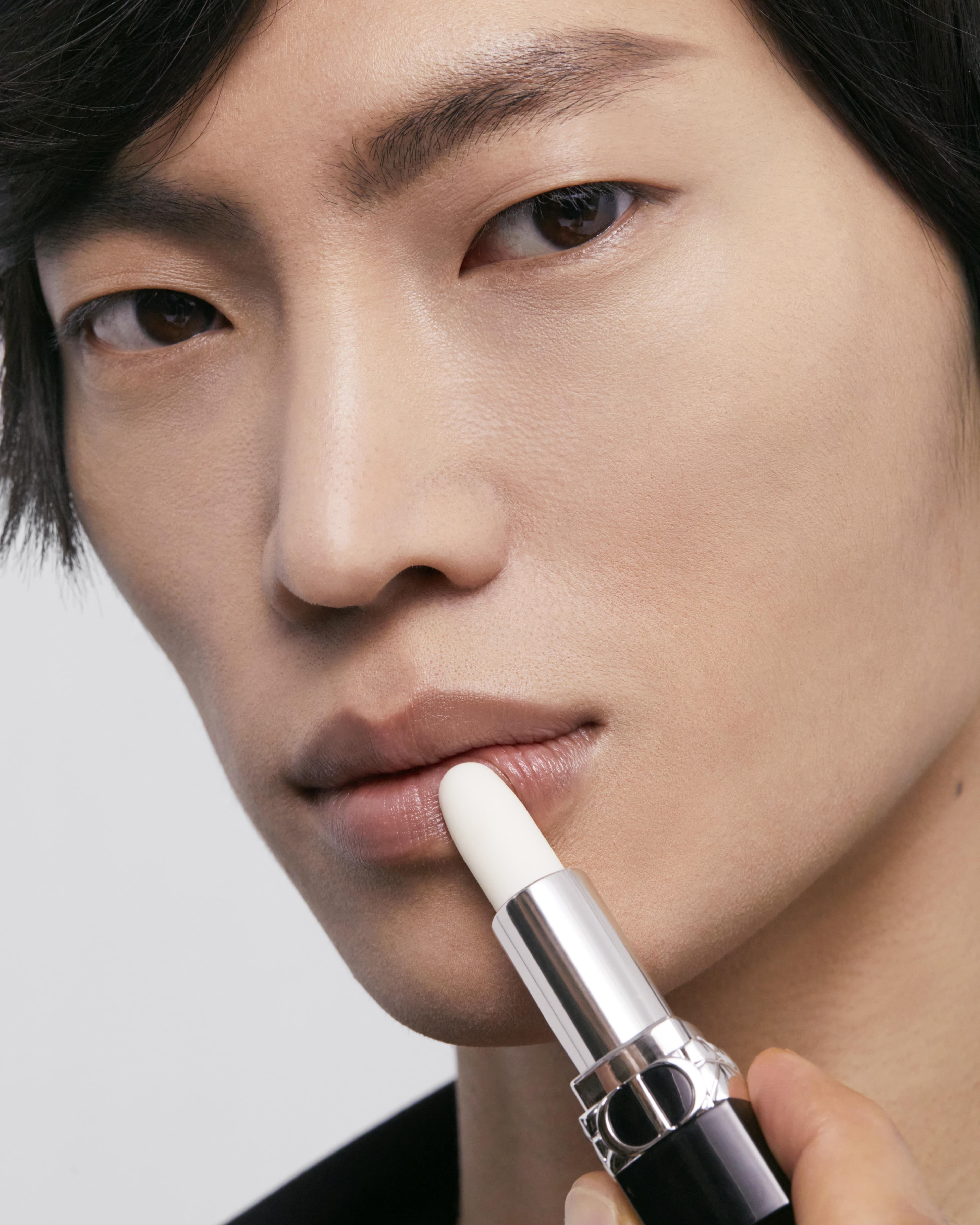 Philips applied Diorshow On Set Brow to fill, fluff, and set arches without a hard, flaky hold, and tapped Rouge Dior Velvet Balm 000 Dior Natural onto the lips to add a dose of moisture.