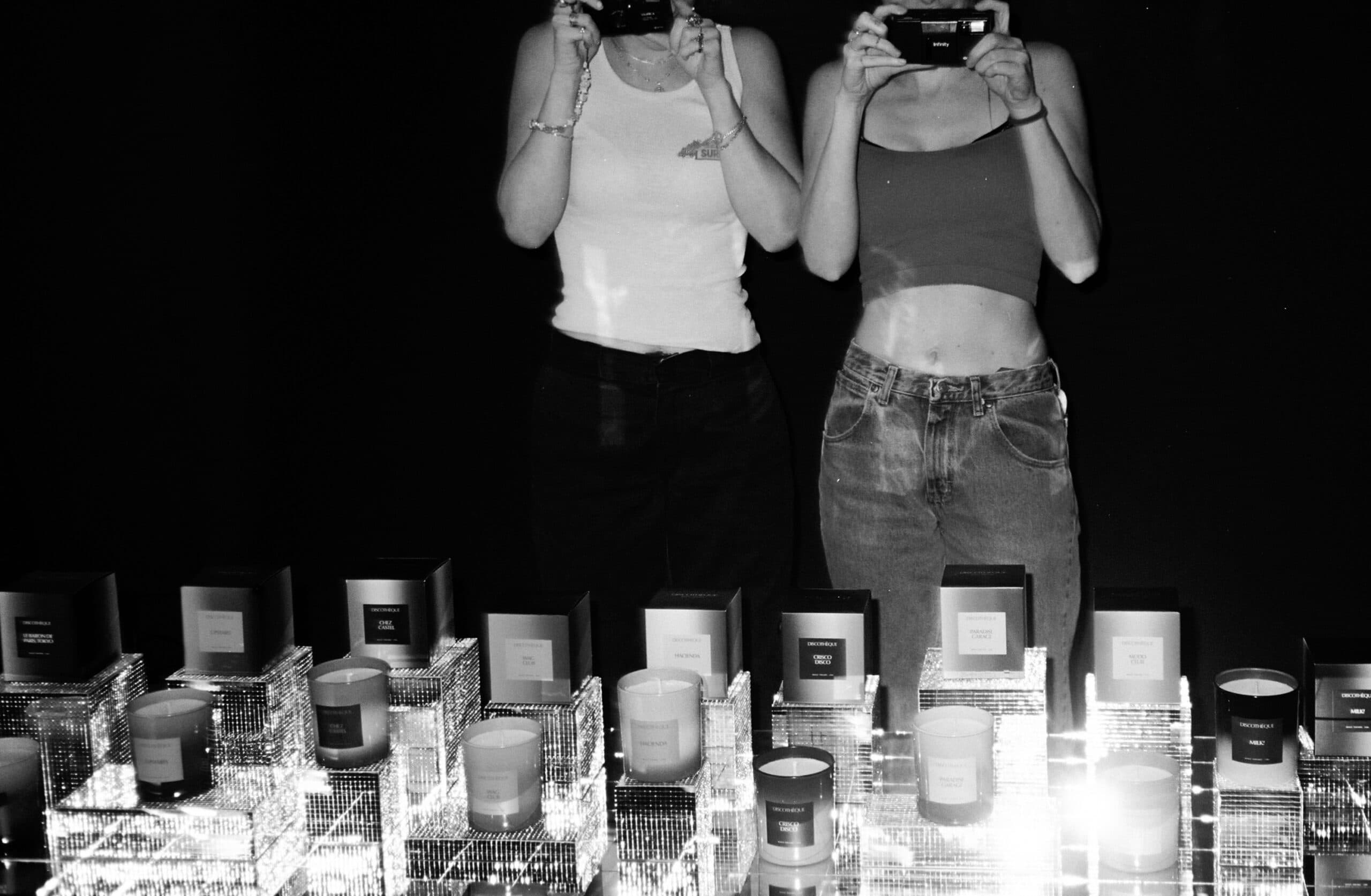 Have you ever wanted to just bottle up all of the best parts of a great club night? Leaving the combined smell of smoke and sweat and the memories of outrageously long bathroom lines behind, and only taking what truly resonates: the feeling of complete and utter freedom, the unexpected friends you made along the way, and how connected you felt to the moment and disconnected you felt from your phone? Well, there's a fragrance brand for that. Discothèque Fragrances is the passion project collaboration between LA bred besties, Jessie Willner and Hanover Booth, who share a love for the dance floor and the feelings that come along with it. With a fascination about and appreciation for the club culture of the '70s, '80s, and '90s when human connection was the main form of entertainment and doomscrolling TikTok wasn't an option, each Discothèque fragrance aims to transport you to a specific club, specific night, and specific moment through the power of scent. "I think that's the point of Discothèque: all the highs of your life captured," Willner tells us.