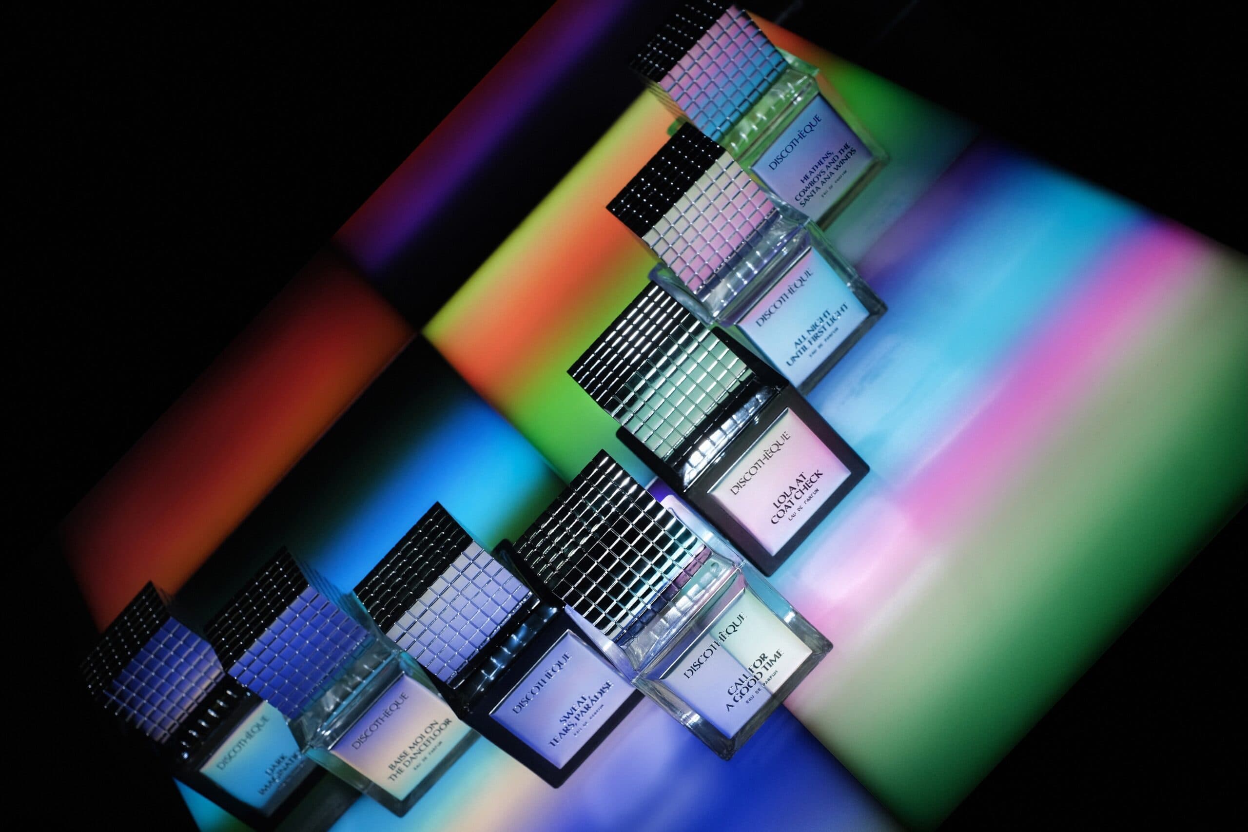 Jessie WillnerOn their website, each fragrance has a little story that goes along with it—a contextualization of the bottled moment with details about what the sky looked like and what the air felt like, for example—complete with a year and city: 1979 Paris, 1986 Los Angeles, 1989 Ibiza, 1995 Mykonos, 2000 Tokyo, and more. Sometimes the fragrances are inspired by a more specific microscopic moment: "Sometimes we take a moment, like when you catch eyes with a stranger and you guys both feel this electricity between you," Booth shared. And the bottles and packaging are a continuation of the storytelling: tops that look like disco balls and the packing of their 2ml samples resembling condom wrappers. Working with five different perfumers, each fragrance is distinct but with a consistent, Discothèque throughline: it will transport you.