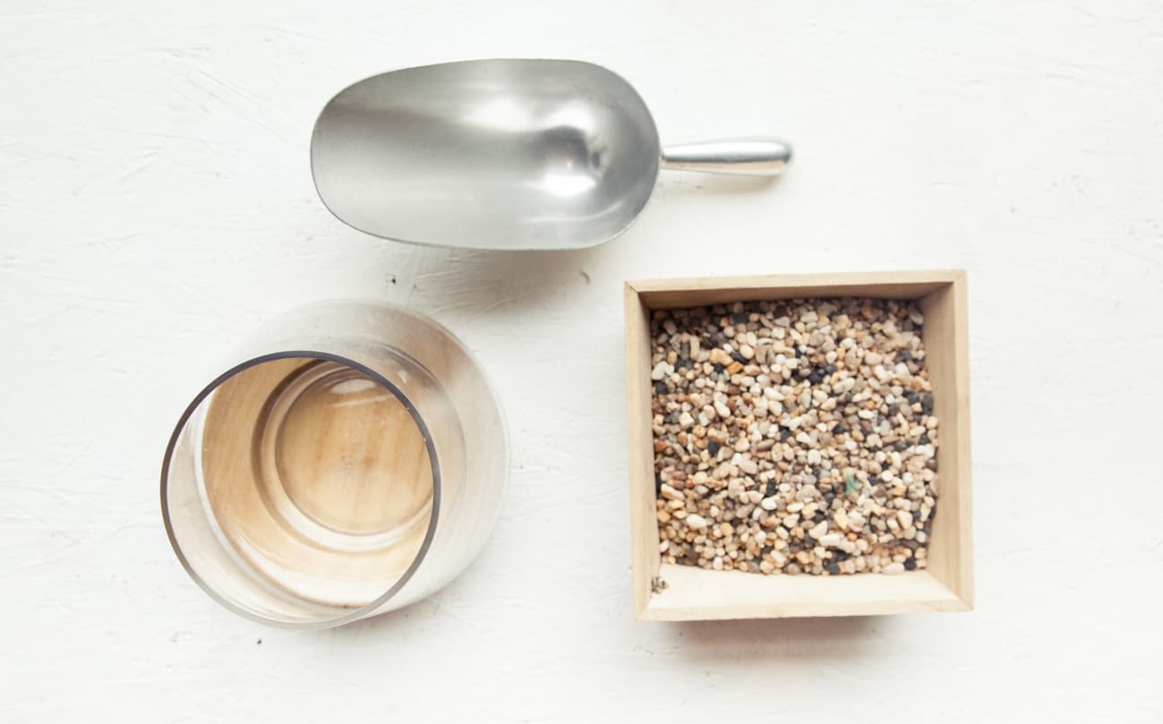 Add a couple scoops of activated carbon and mix to the gravel. This will help keep your terrarium happy and clear of any unhealthy bacteria.