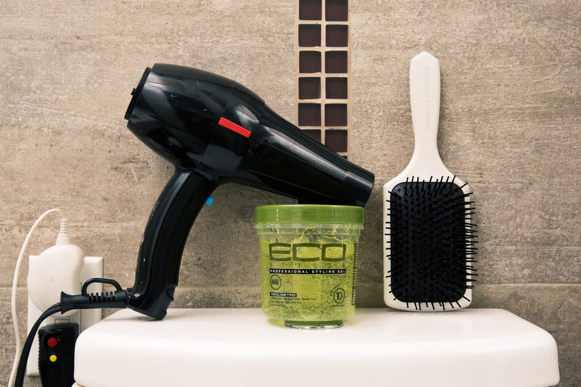 “Castor oil is really good for your hair. I am the queen of protective styles—I only do protective styles or wear my Afro. I do not straighten my hair at all. I’m like, ‘Yo, why am I going to straighten my beautiful hair when I can just straighten someone else’s by clipping it in or sewing it in?’ When I’m not wearing wigs or crocheted braid weaves, I will do this L.O.C. method. It’s leave-in conditioner [liquid], oil, and cream. You either braid your hair or put it into a Bantu knot and let it set, take it out, and your hair has this nice curl pattern. Or, when I’m doing a human-hair wig, I make sure I deep-condition it once a week and wash it every two weeks. As far as my edges, I always lay my edges before doing my makeup. By the time it’s completely set, I can apply a little bit of product around it instead of the greasy mess of gel on top of foundation.”