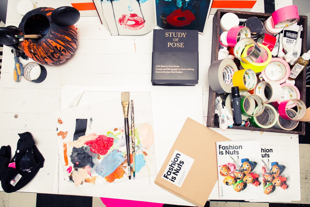 “It drives me crazy when people say, ‘Think outside of the box.’ There is no box! What we all need to do is create a box. When brands, artists and designer are really, really good, they have created a box and they’ve stayed in it. What I've done is created a box for myself and in this box I have very limited materials: I have gaffer tape, paint, fashion and pop culture. I basically work within that box and [sometimes] I’ll add in a surprise element or something, like walnuts, but it all matches with everything else I do. In my figurative painting I use gaffer tape vertically and in my graphic paintings I use gaffer tape horizontally. What I'm doing is literally trying to push out the parameters of the box I've created. It makes it easier for me because otherwise there are too many things to pick from and focus on.”
