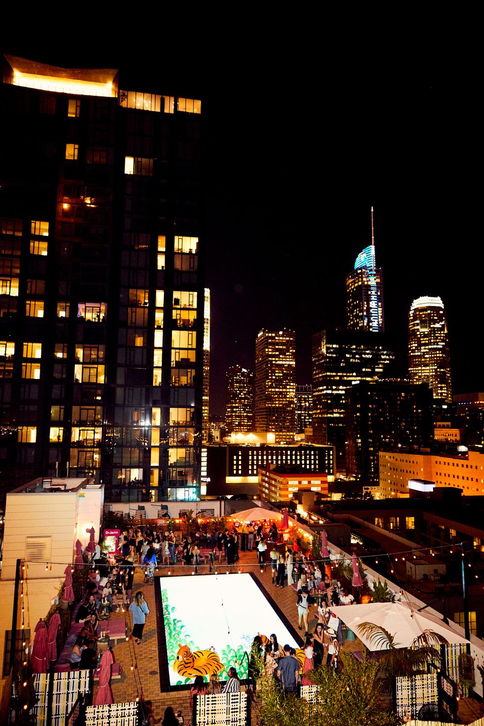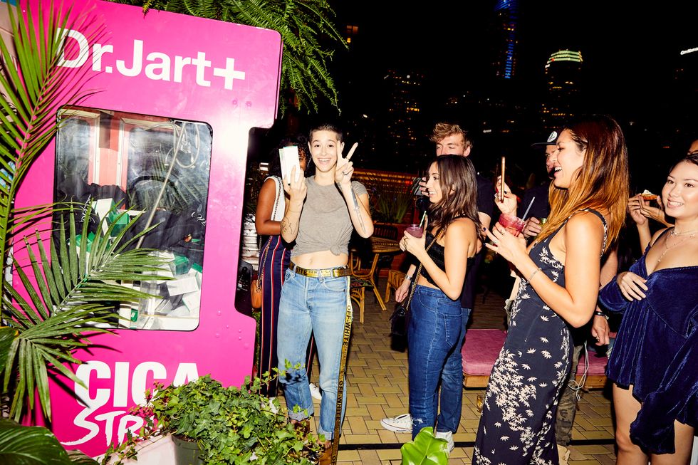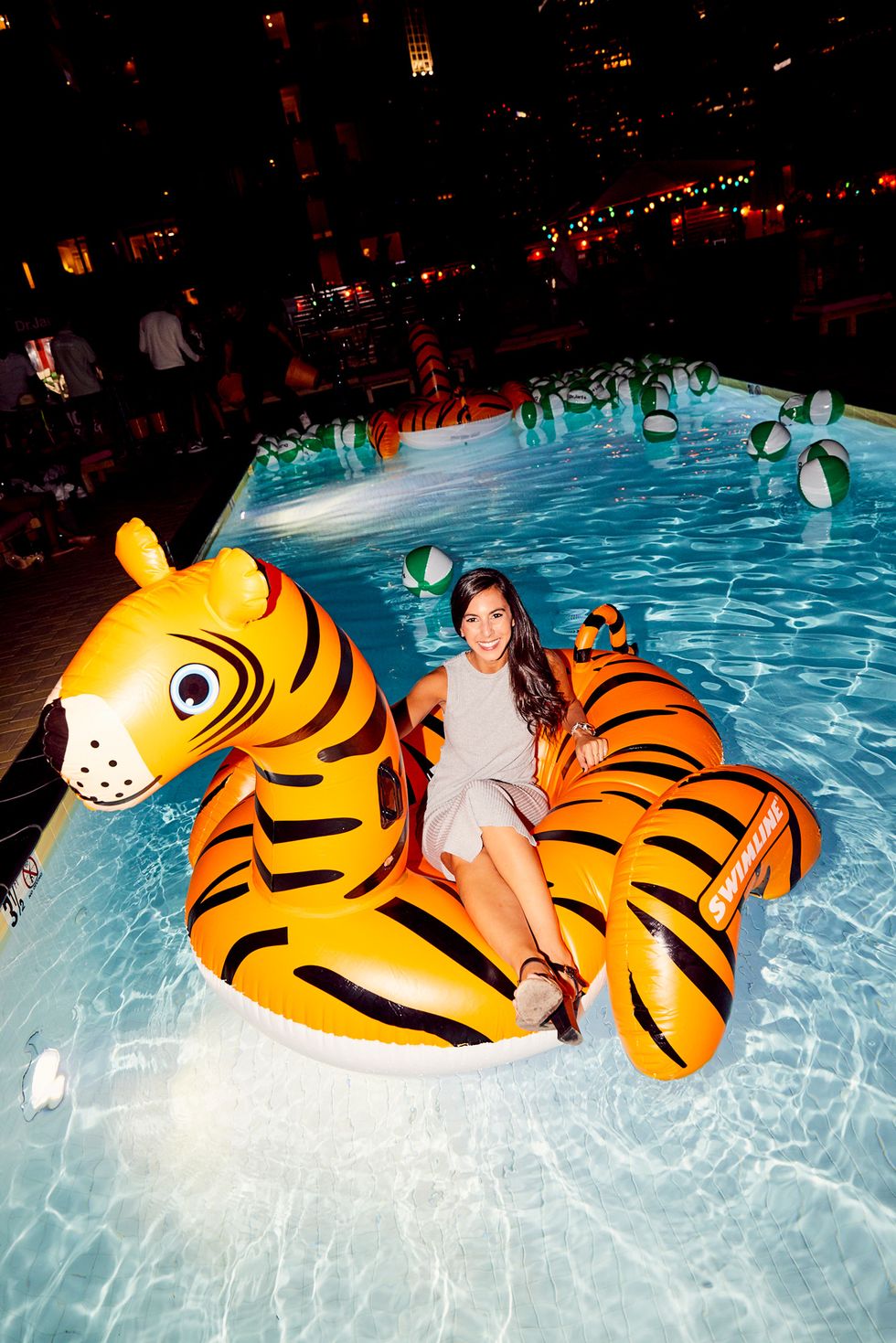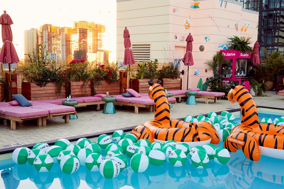 Picture this: a rooftop with a pool full of beach balls and inflatable tigers, a lightbox photo wall, and a claw machine, all in the middle of a jungle-themed party. This was *exactly* the scene on the rooftop of the Freehand Hotel in downtown L.A. Tuesday night at our party with skin-care brand Dr. Jart+. Our incredible co-founder Stephanie Mark hosted, the amazing Brittany Sky was our DJ (because of course), and we had all the guests sippin’ on tiger-themed cocktails. Chic, no?