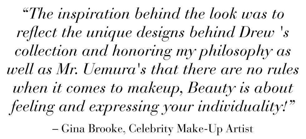 But it was with Brooke and Shu Uemura's mantra of 'Brave Beauty' in mind that Ginsburg soldiered on—and eventually, in fact, not only came around to her electric green eyeliner, but kind of fell in love with it. But what else would you expect from the beauty brand that's collaborated with everyone from Takashi Murakami to Viktor & Rolf and Karl Lagerfeld? That, and the fact that their false eyelashes alone are not only some of the best in the business, but also range from being made entirely of everything from feathers to tulle and sequins—we were even able to convince Ginsburg to try a pair on herself. How's that for brave?