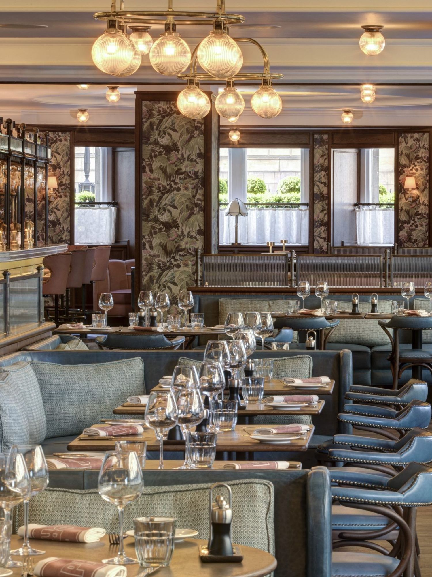 I hadn’t gotten a chance to soak in my accommodations earlier and thus took full advantage of having some time to do so when I returned. I was staying at the iconic and beautiful Balmoral, located at the exact intersection of Old Town and New. With over 160 rooms, 20 suites, and a towering, crown-steepled clock tower, one would think the enormous property may be more impressive than cozy. However, my top floor, garret-style room overlooking Old Town could not have been more comfortable and inviting. I thawed out from my walk by taking a hot bath in the large soaking tub, listening to the rain pattering against the windows. I was able to see some other rooms on the trip, most with soaring ceilings and amazing views over Scott’s Monument or the Princes Street Gardens. They were all beautiful, but my cozy room, with its romantic sloping ceilings and bird’s-eye view of the city, was definitely my favorite. The elegant Palm Court, warm yet sleek Brasserie Prince, and the restorative spa—whose gym had the best wallpaper of all time—were also highlights of staying at the historic property.