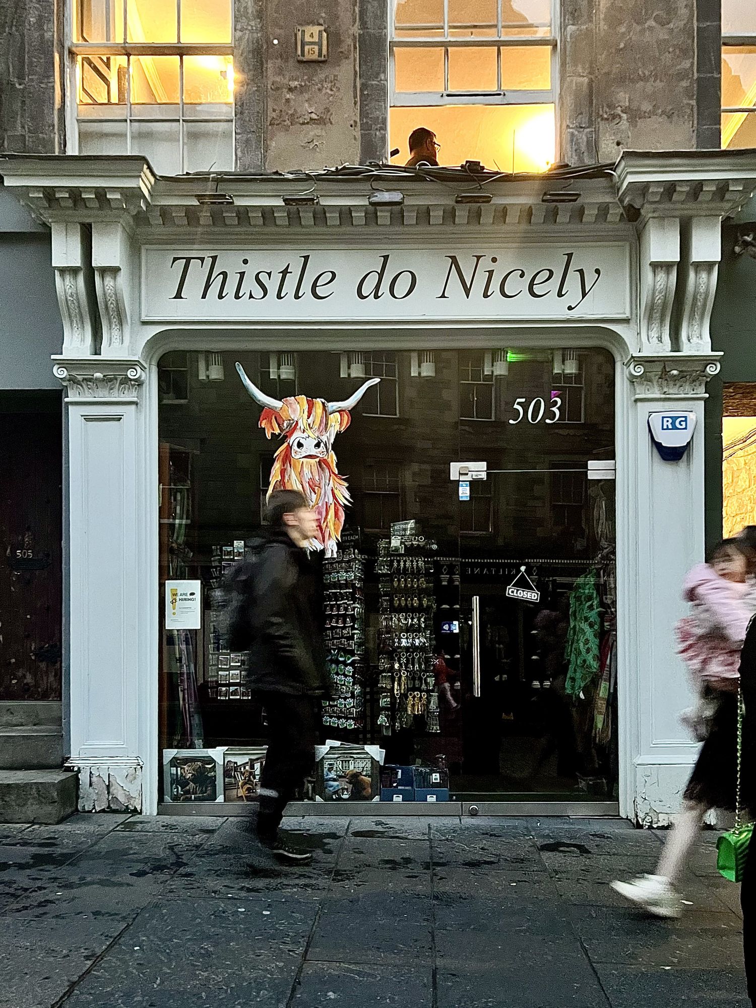 On this trip, I gained three scarves, two notebooks (one embossed leather, one plaid), one necktie, one Strathberry luggage tag, whiskey fudge, shortbread, artisan gin, 12 oz of fancy tea, two city guidebooks, one bedazzled plague doctor Christmas ornament, and an enduring love for Scotland. My happy place for the foreseeable future will be the memory of walking around Old Town Edinburgh in the rain. I’ll reminisce fondly about glancing down a street and wondering if I’d somehow stumbled into 1650 from 2024, Outlander-style, that feeling of being suspended in time at the intersection of the past and present. Beautiful, transporting Old Town is perfect for getting lost—the winding streets, the narrow enclosed alleyways, the hidden stairs and courtyards—and what is travel besides losing yourself? The best travel experiences happen when you let your guard down, let in the unfamiliar and disarming, and allow something fresh and wonderful to become a new part of you. That feeling of getting broken down and put back together again better than before is why I fell in love with travel in the first place. I thought I had aged out of that wonder, that vulnerable malleability. But if my time in Edinburgh taught me anything, it’s that you’re never too old to fall in love again—with a whole city or even just a perfect strawberry.
