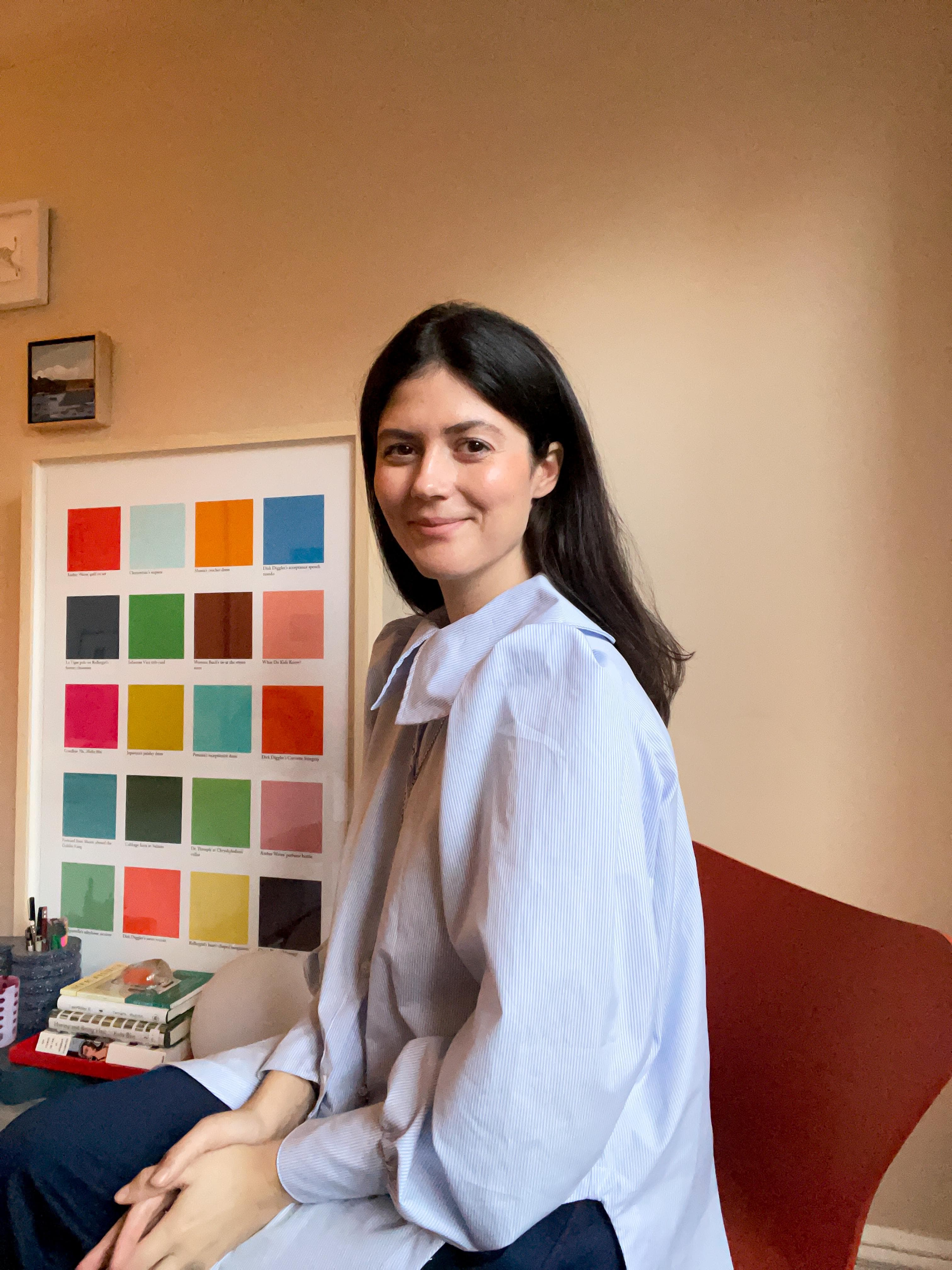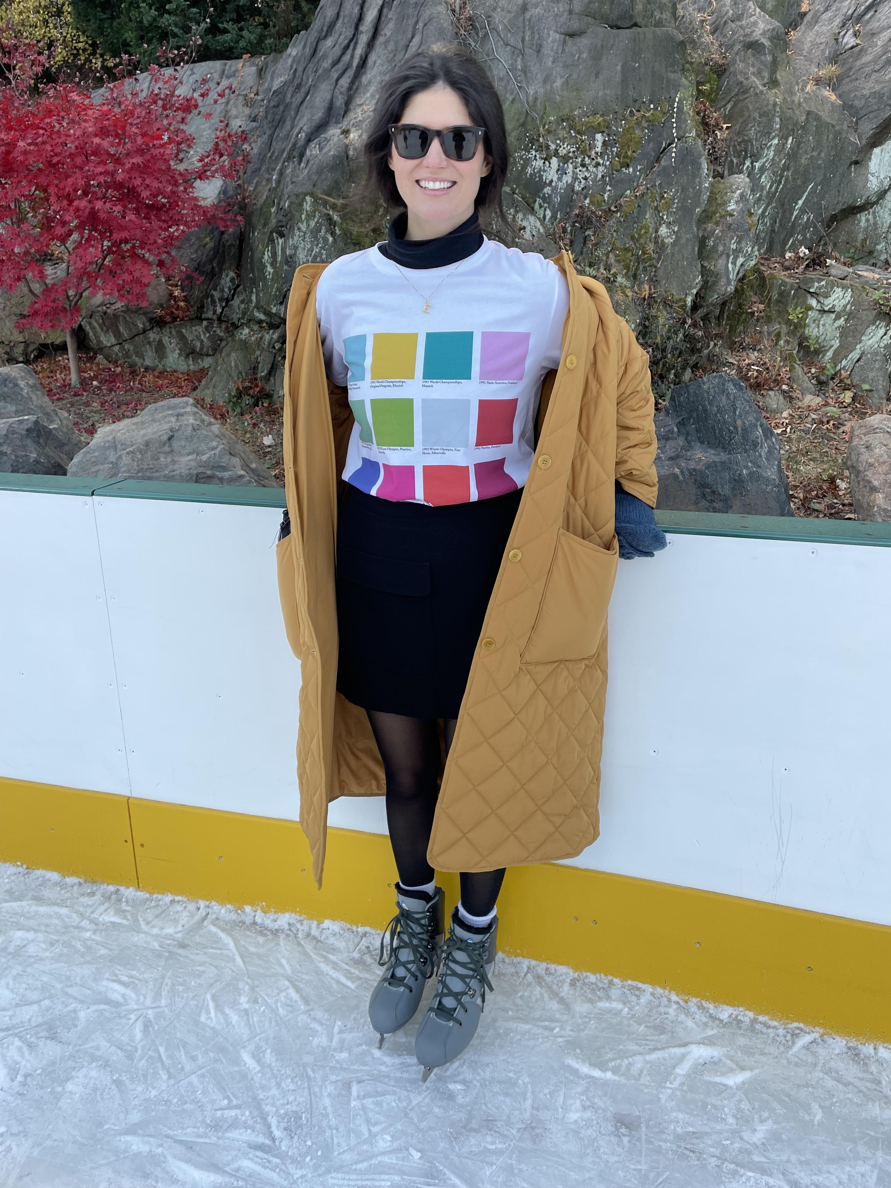 Edith Young understands color. Her book Color Scheme: An Irreverent History of Art and Pop Culture in Color Palettes proves this statement to be true, as does her slightly eccentric wardrobe. Despite a gravitational pull toward otherworldly prints, the connective tissue of her outfits skews neutral. Think creamy overalls, beige cardigans, and chocolate Chelsea boots, all of which are surprisingly practical choices for the chromatically obsessed.