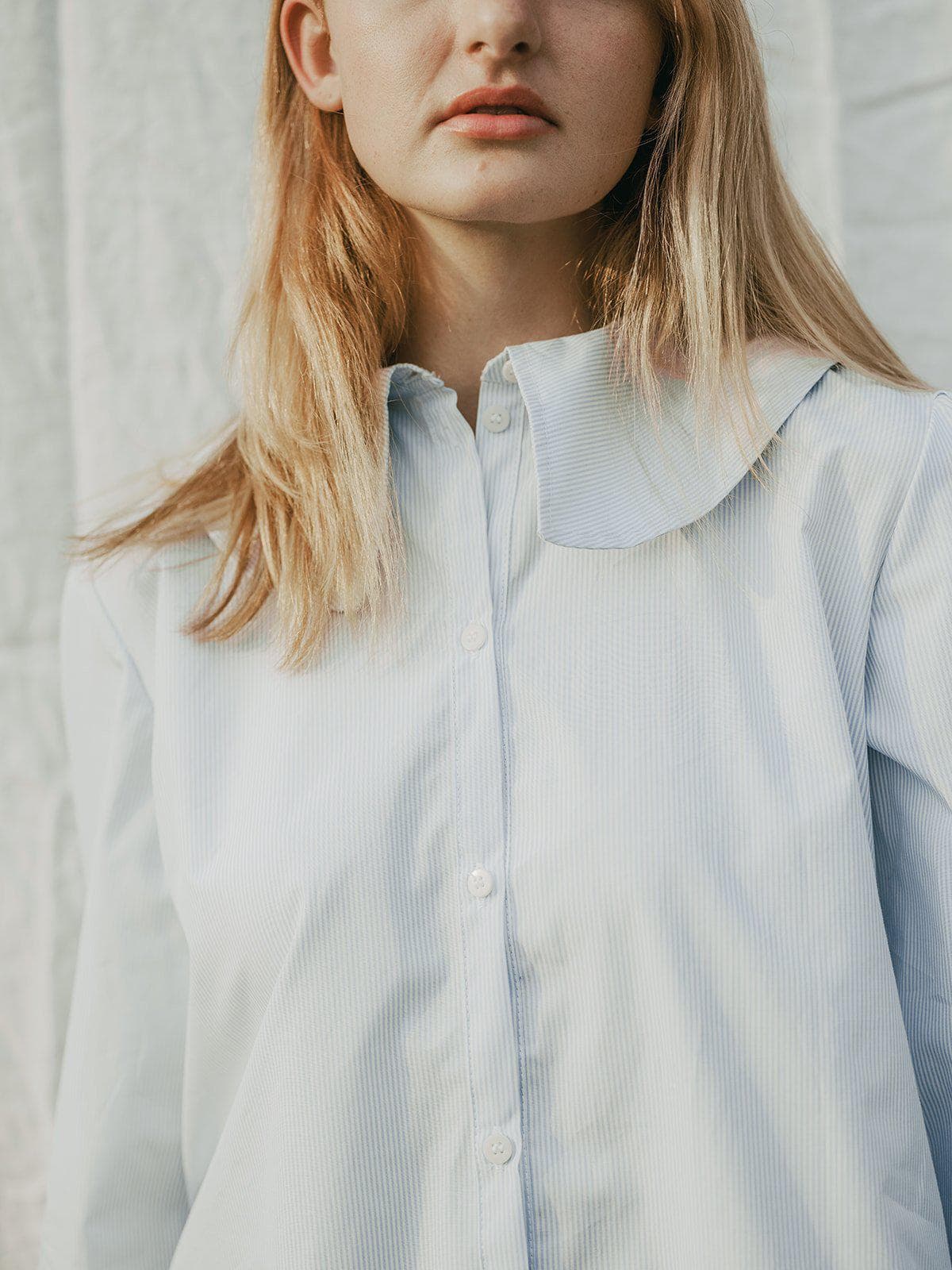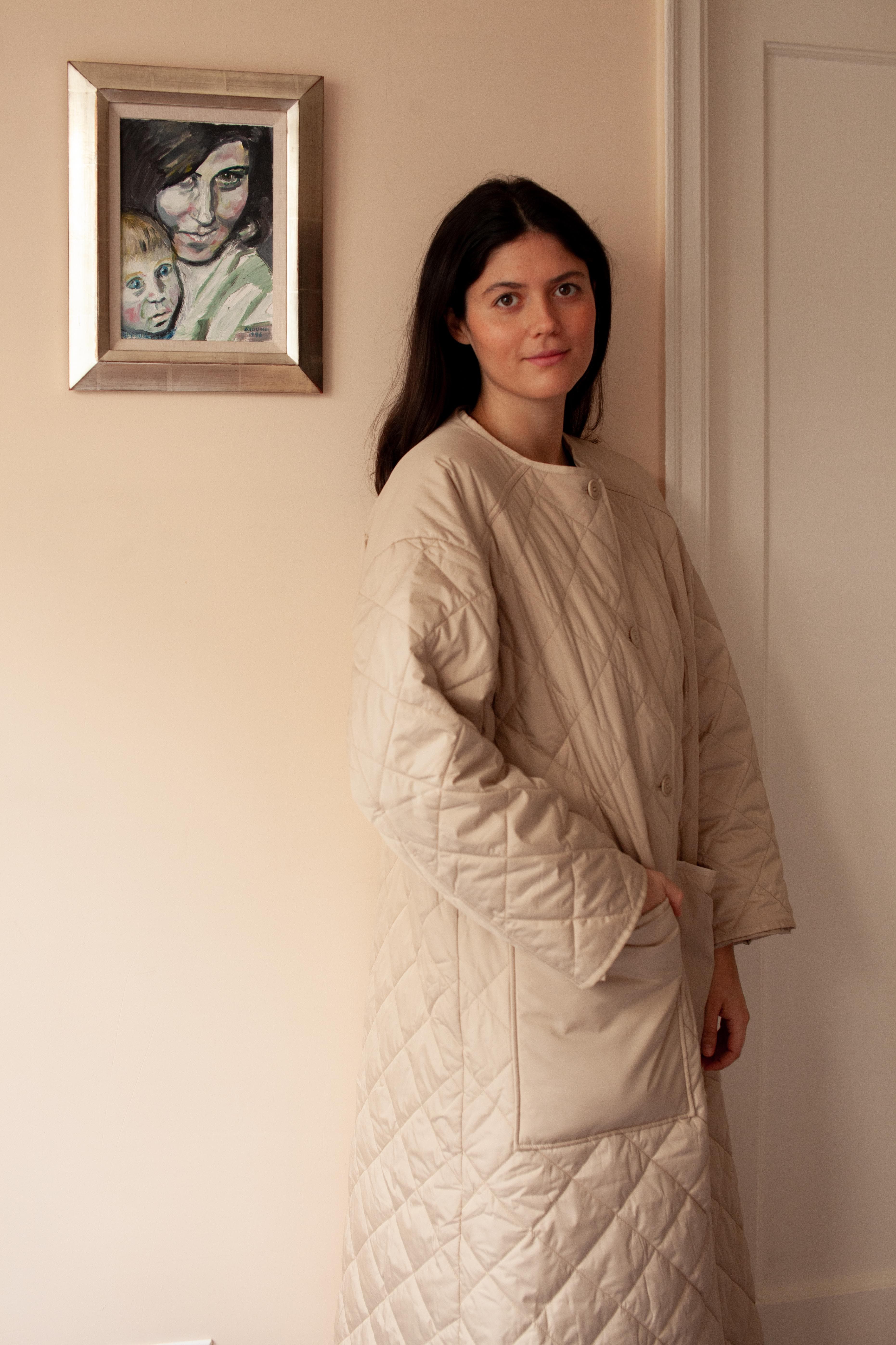 “The winter coat I have is by Rodebjer. It's definitely also on the pricier end of the spectrum, but it's like a cocoon and I can also Citi Bike anywhere in it at any temperature in the winter. It's enough of a statement where you could wear a timid outfit underneath it, and it would cohere nicely. Then also, if you wear the Emma Rothkopf blouse under it, you can have the big collar stick out because it doesn't have its own collar. It all has to work together.”