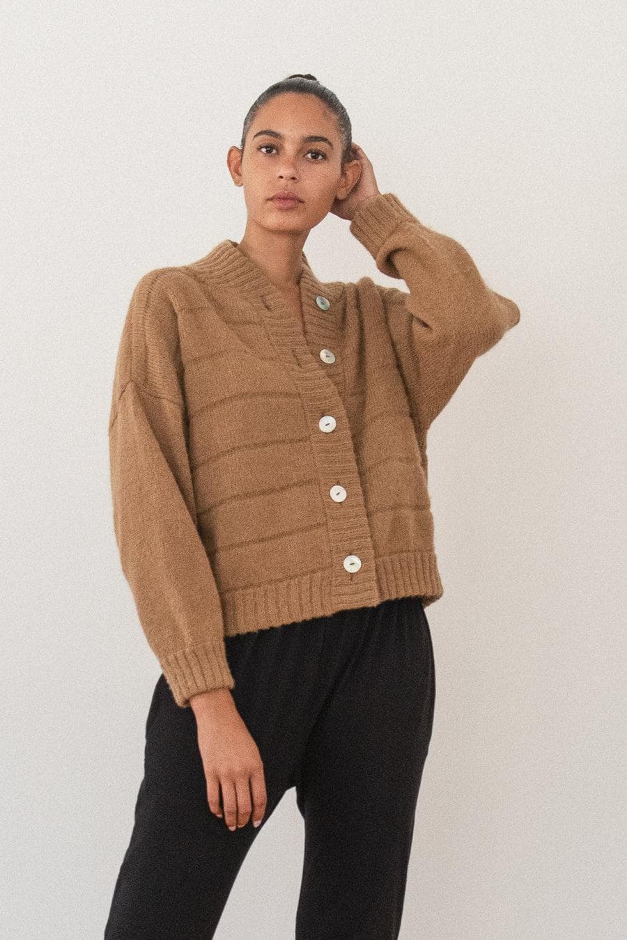 “There’s a Wol Hide cardigan cut in a bomber jacket shape. I think every sweater looks like it'll be ‘the one’ when you look at it online. This is the rare one that I actually want to wear all the time. I wore it recently over the Carhartt overalls and tissue turtleneck to a bowling alley, and it even looked good with bowling shoes.”