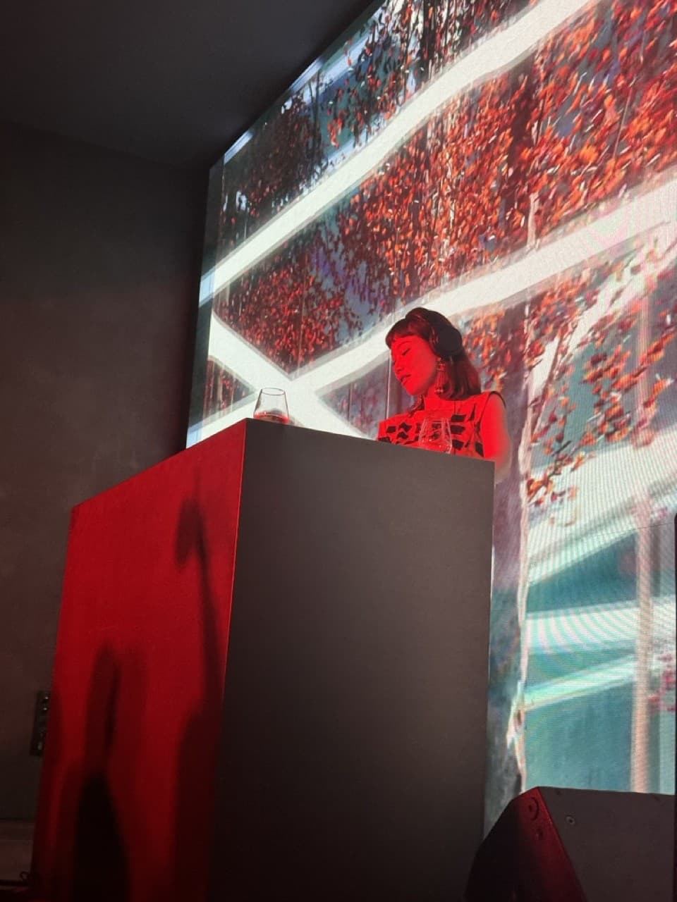 Next, DJ Mademoiselle Yulia took the stage, and behind her, a screen swirled with what looked like Dippin’ Dots in glitter. The crowd started dancing. After her was fashion designer and DJ Nicolette Yip’s set. Both women rip-roared through songs I’d never heard and club anthems I had: Kylie Minogue’s “Can’t Get You Outta My Head,” and ABBA’s "Gimme! Gimme! Gimme! (A Man After Midnight).”