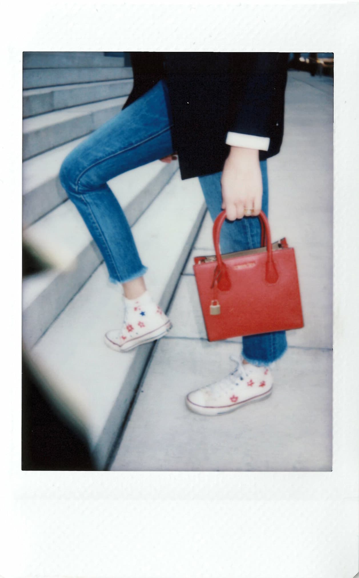 Our editorial director, Laurel Pantin, is no stranger to the whole street style scene—meaning she’s pretty much perfected the looking-cool-while-running-around-doing-a-bajillion-different-things thing. Here, the wardrobe staples she’s returning to this spring (hint: pajamas!), what’s on her headphones as she runs between appointments and meetings, and how an apple-red Michael Kors bag is just the thing to get you noticed by the likes of Phil Oh.