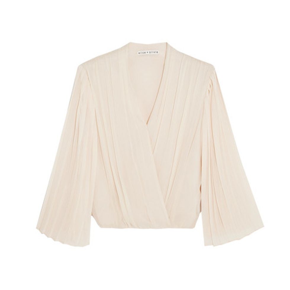 3. Alice & Olivia Blouse: I’m a true believer in the power of a great white blouse. This one, with its plunging neckline, is just the right amount of heat.