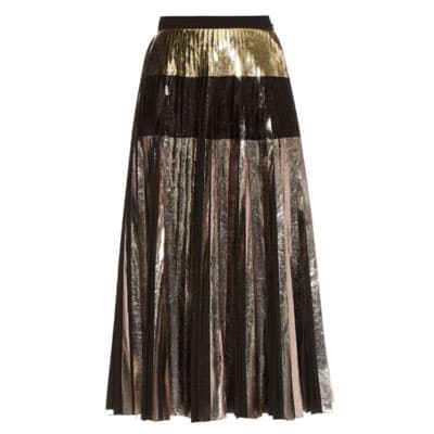 I love me a shimmery pleated skirt. I mean, it's insanely comfortable, super chic and conveniently expands after consuming practically everything off the menu at the new restaurant I'm likely trying out. Plus, all the wine. And since my lips will likely be stained a nice shade of Merlot by the glasses had, I'll be sticking to a sheer plumping lip balm. I also love this simple black Stella tank, which shows just the right amount of cleavage—always staying classy, ladies :v:.