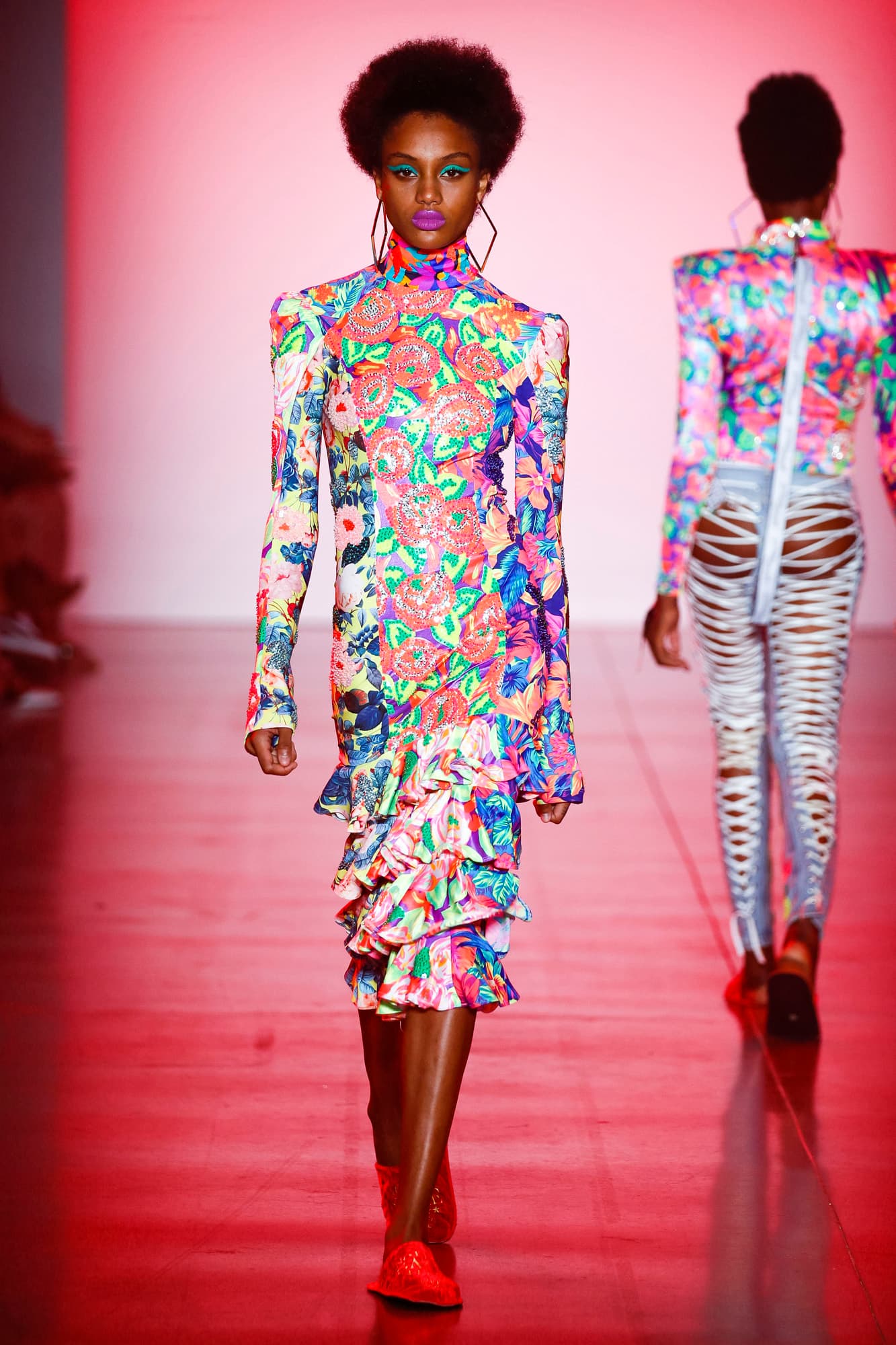 “It’s the dream,” says Cowan. “When I was 12, I decided I would be a fashion designer and live in New York City, and to be part of such an amazing week, it’s a dream.” This season, Cowan showed a collection full of exaggerated, structured tulle dresses and reworked suiting done up all in black along with animal-print jumpsuits and dresses, and pastel-hued dresses embellished with massive feathers—all the kind of thing you’ll probably see on the next star-studded stage. “My future goals are to create a modern fashion house that is based on inclusion and excitement,” he says. “I want to enrich American fashion and create opportunities for more like-minded individuals.”