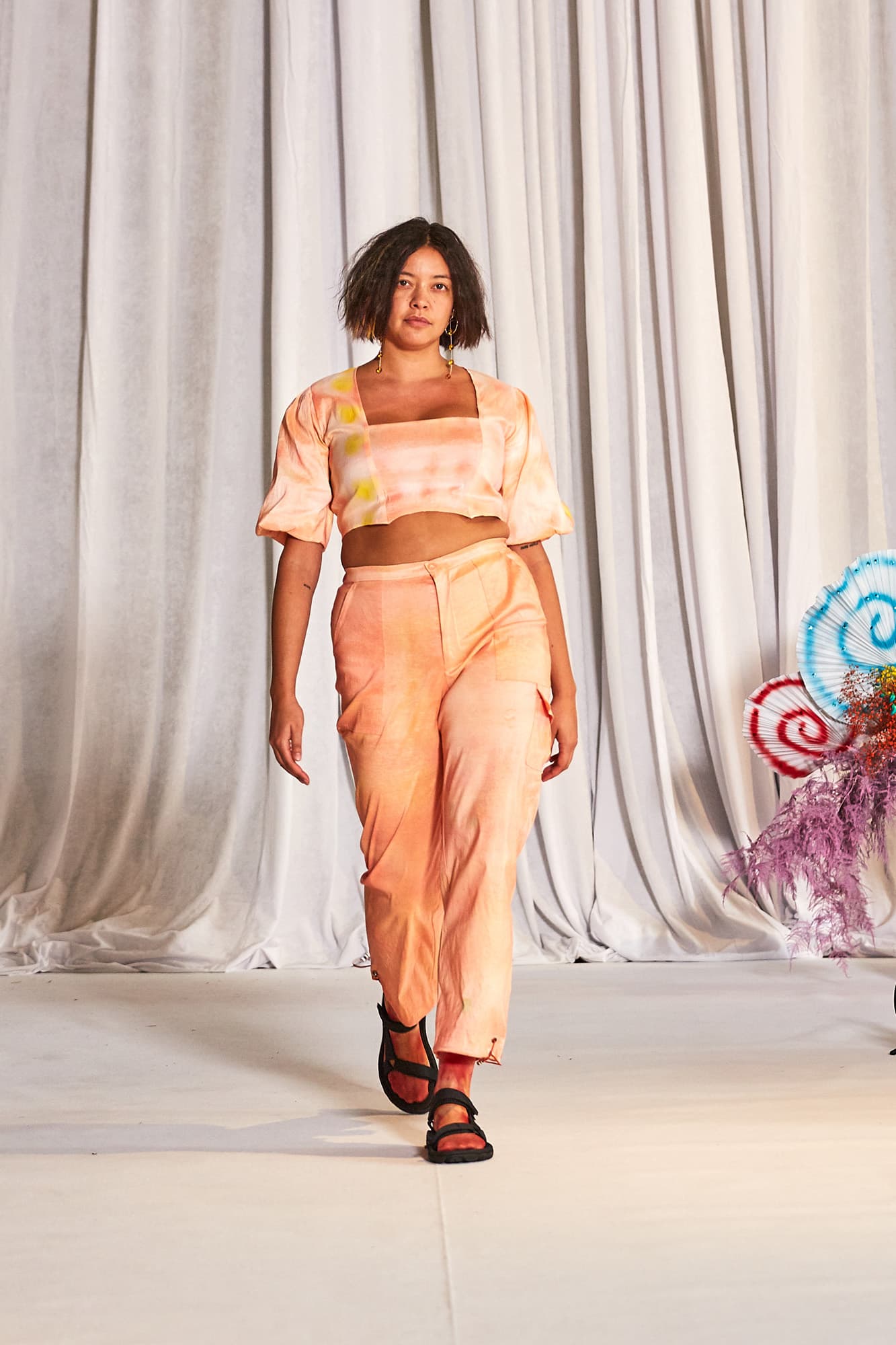 Consider Collina Strada the label you didn’t know you needed in your wardrobe yet. Founded in 2009 by Hillary Taymour, the designer has presented nearly 10 times at NYFW, all with an element of performance involved. Take, for example, last season, when she staged a self-empowerment-fueled wedding in which the artist Sasha Frolova made vows to herself. This season, models walked the runway to the tunes of a soothing sound bath.