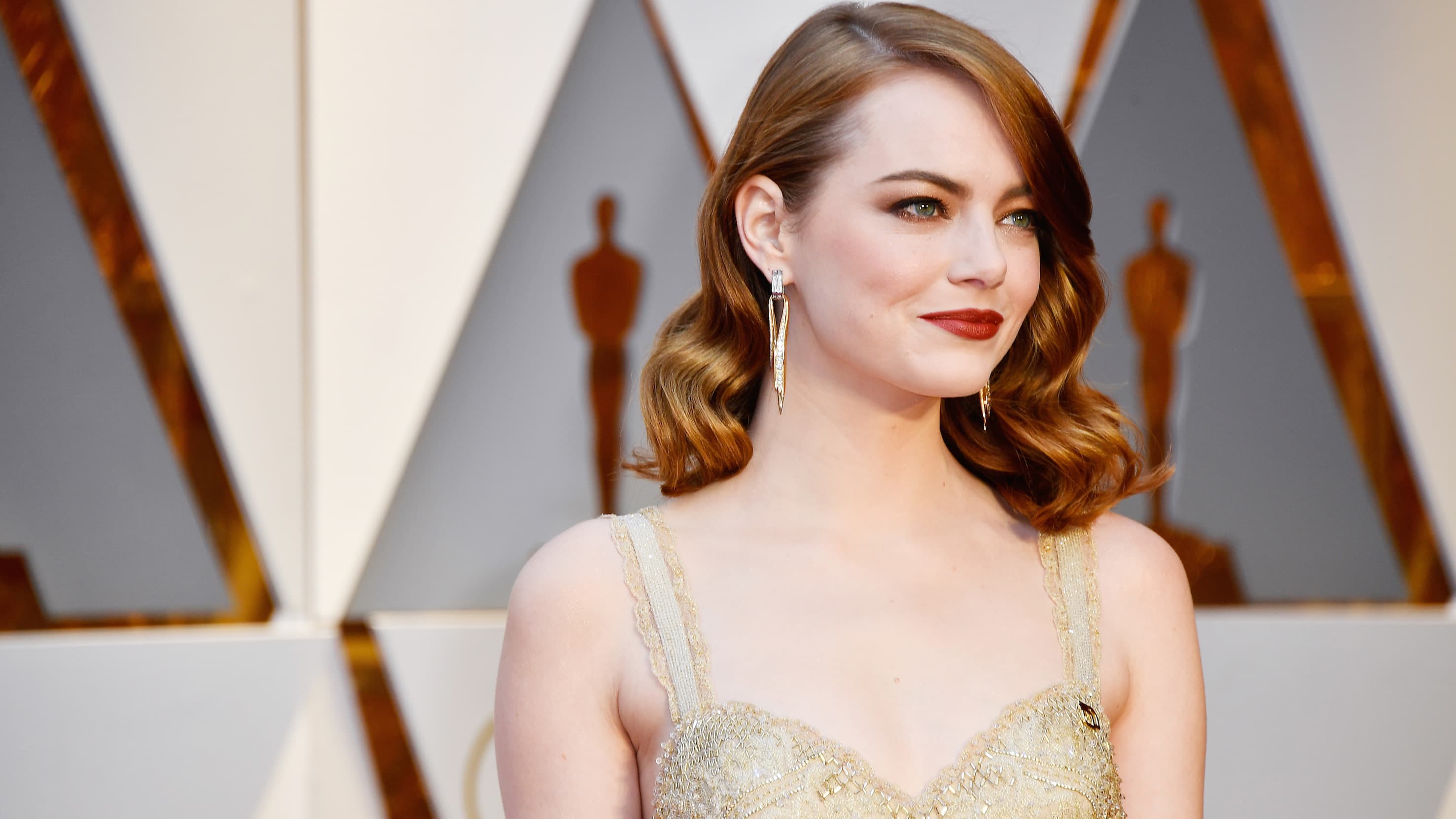 We were waiting with bated breath to catch a glimpse of Emma Stone on the Oscars red carpet, and when she shimmied out in a stunning gold Givenchy couture gown that mimicked the golden Oscar itself, we were nodding with approval—even more so when we noticed the perfectly placed gold Planned Parenthood pin just below her left strap. The actress, who just won her very first Academy Award (for Best Actress in La La Land, because of course) had her look topped off with the most glamorous makeup. We caught up with NARS makeup artist Rachel Goodwin, who has been part of Stone’s glam team for 10 years (!), to get all the details on how we can (attempt to) recreate this look for ourselves at home.
