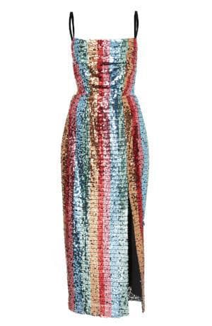 This isn't the first time the actress turned activist has opted for a shape-shifting ensemble on the red carpet, either. In what I personally believe to be one of the best red carpet looks of all time, Watson wore a coral-hued, cap-sleeve dress by Christian Dior during the Raf Simons era at the 71st Annual Golden Globes back in 2014. The dress, simple in silhouette, stopped short at the back to reveal not only a hefty portion of skin but also another pair of tapered black pants. A tantalizingly high slit at her right leg also allowed viewers to glimpse a whiff of what lay underneath.