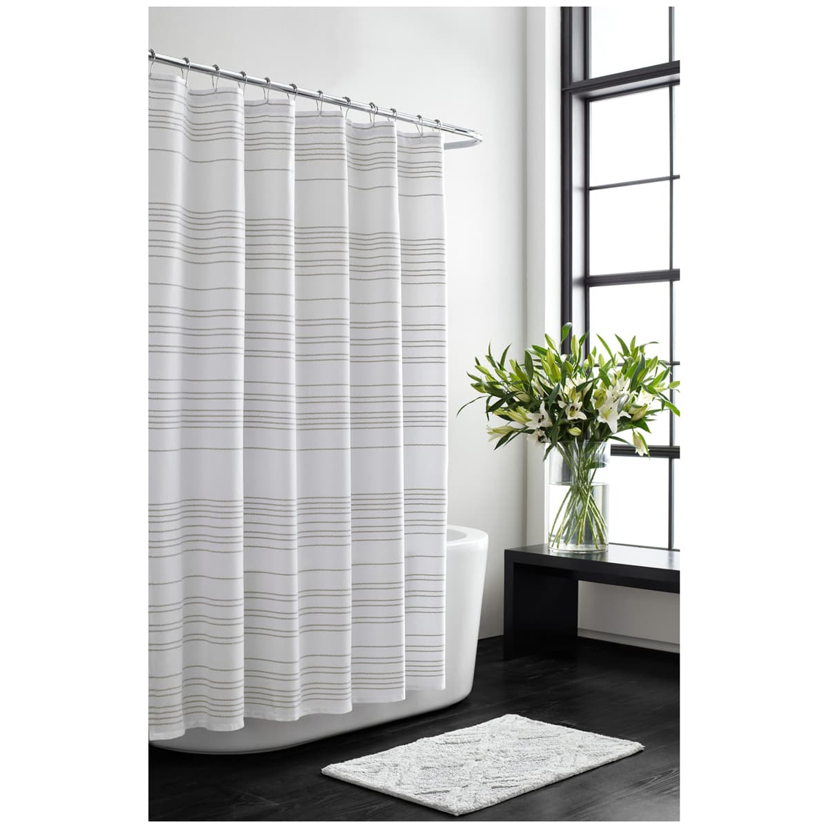 Embroidered Stripe Shower Curtain