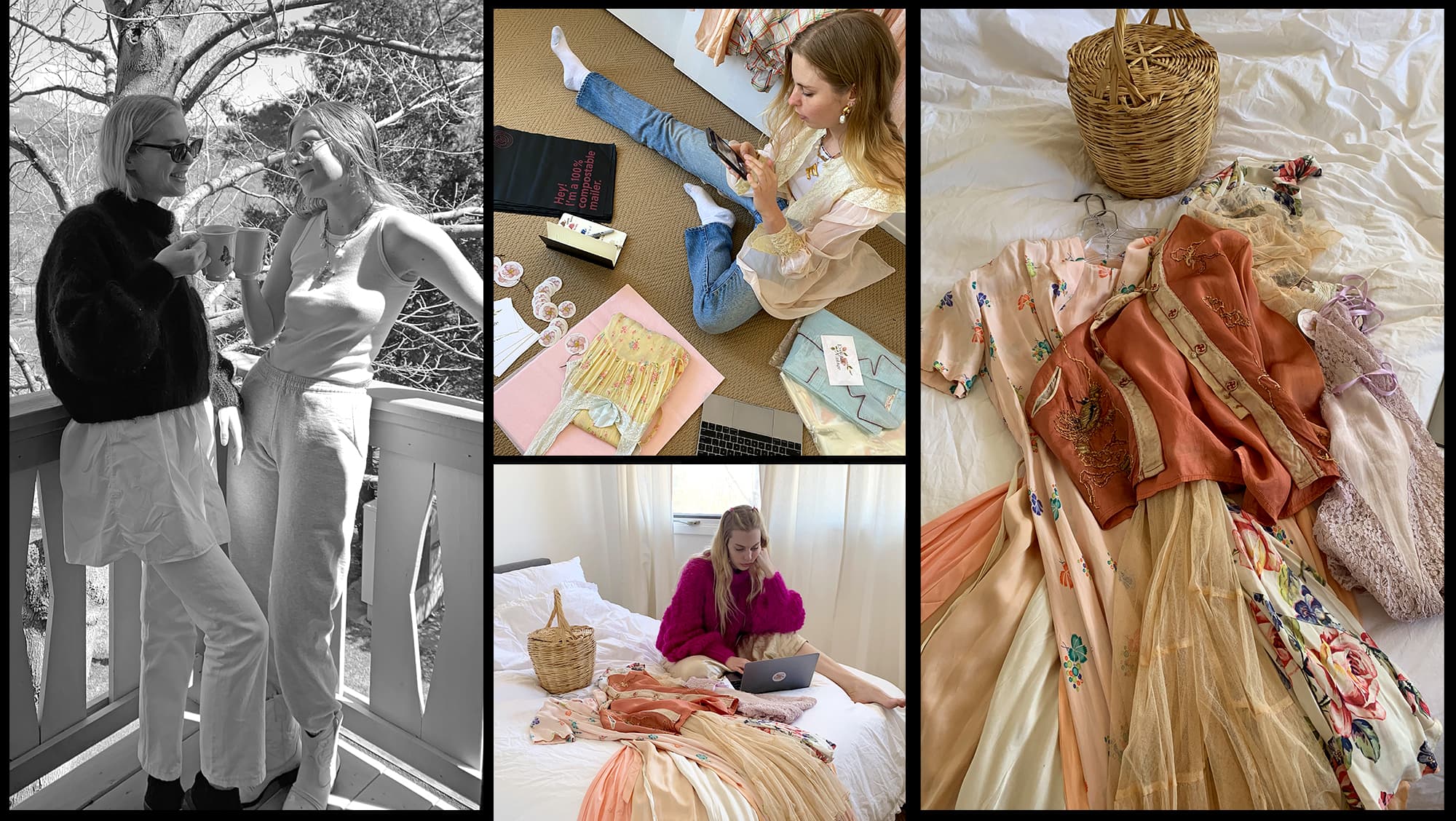 All summer long we’re checking in with friends to see how they’re working from home and leaning into the warmer months. This week we had the pleasure of chatting with twins Emilia and Amanda Musacchia, the masterminds behind Eveliina Vintage. These creative superstars have gracefully taken over the business—which was started by their mom in the ’70s—and transformed it into a successful online store, resplendent with silk dresses, Victorian blouses, and hand-dyed pajama sets. Read below to see how they stay focused and motivated—Rollerblades not included!