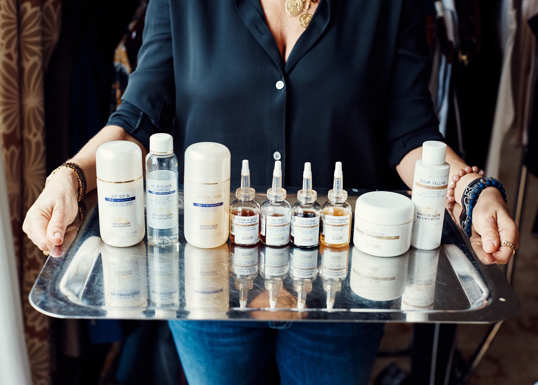 “[Biologique Recherche] Lotion P50. It’s a micro-exfoliator—it controls the pH of the skin. It’s sort of like taking a probiotic on a daily basis for the digestive system—it’s the same idea. If the pH of your skin is 5.5, slightly acidic, you won’t have a breakout, and you won’t have dehydrated patches. Your skin will be calm and have the most even tone. If you fly, if you ate something different, when you apply it, that’s your barometer—it stings one day, and the other maybe not. If it stings, that means the pH is probably a little bit off.”