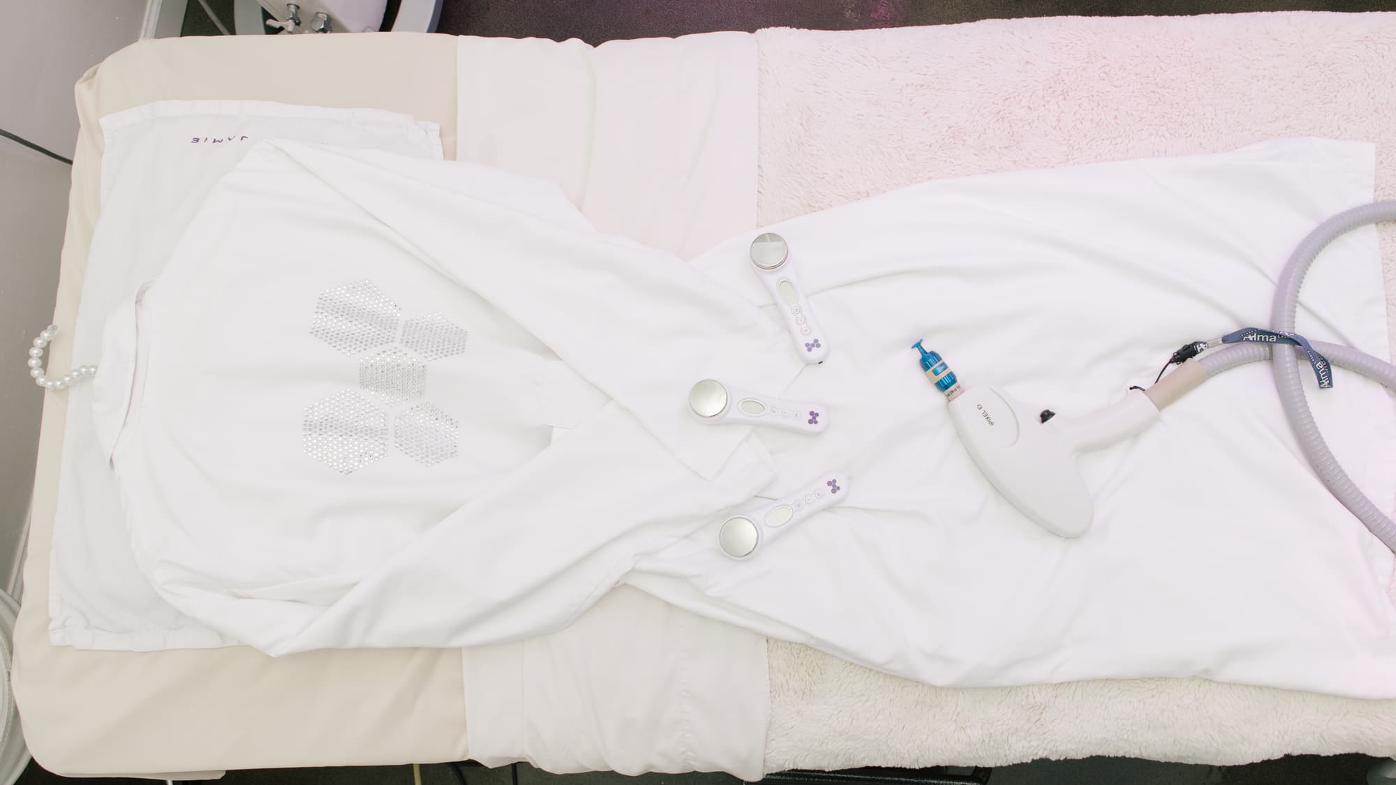 Next she placed two patches connected to a Japanese microcurrent machine on my upper arm, with another two patches attached to her shoulder. I could hardly tell once she turned everything on, but she explained that the current was flowing throughout my entire body, and that once she placed her hands on my skin, our connection activated another river of current, aka alternating current. “It’s like sitting in a high-frequency chair,” she said. I imagined the purple electricity of a Tesla coil zooming through my muscles, depuffing and lifting everything it touched. “He used one, and that’s why he lived so long.” (For the record, Nikola Tesla died at 86, a shockingly old age for someone born in 1856. I also wager that his skin looked incredible.)