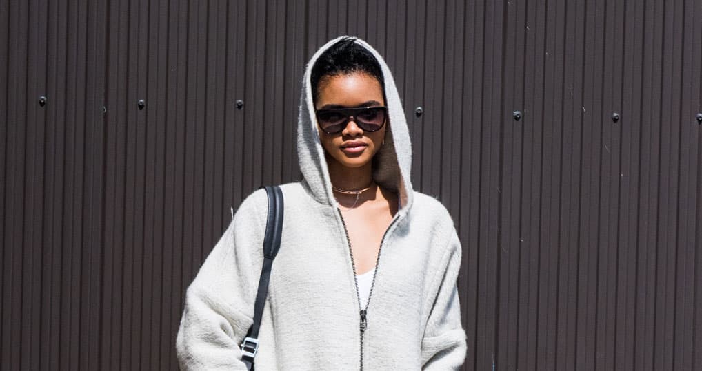 The key here is fashion girl flare (ugh): tailoring is key—this not your camp hoodie or your brother’s sweats. Pants are slim-fit and cuffed, or wide and crisp. Hoods are a yes, and so are sunglasses, always. Thumbs up to varsity jackets if they’re skater-boy checked—and wear yours with a skirt instead of shorts. Or, try this: a sweatshirt as a dress! It’s especially good layered over a crisp white shirt dress—Public School FTW. And just like that, streetwear became fashion girl chic.