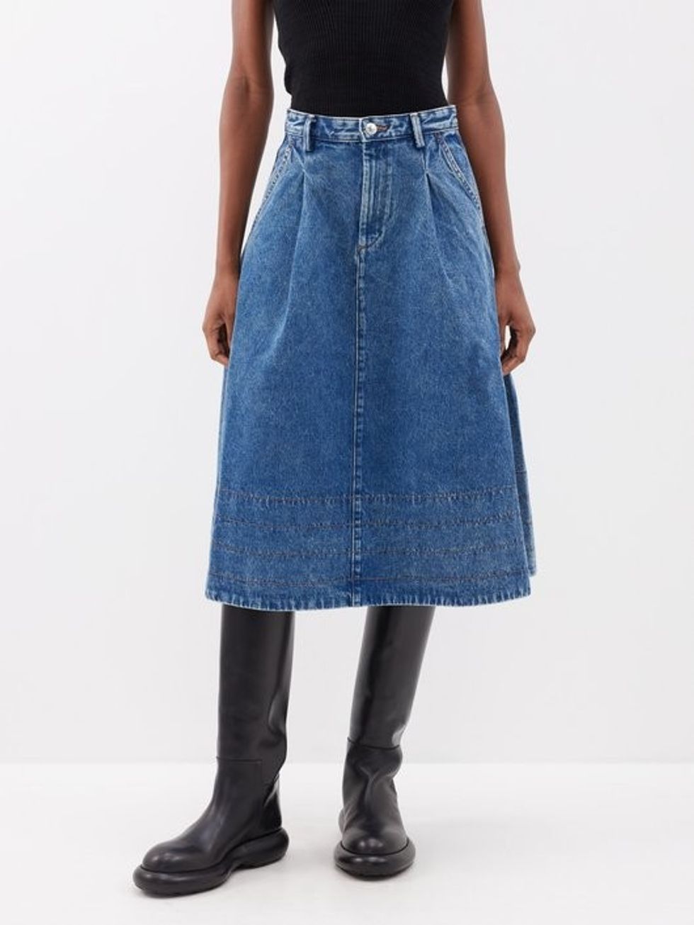For a dash of femininity, full skirts are the girliest trend of the fall season. When it comes to styling, wholeheartedly embrace exaggerated silhouettes—think oversized sweaters to pair with your bulbous skirt.
