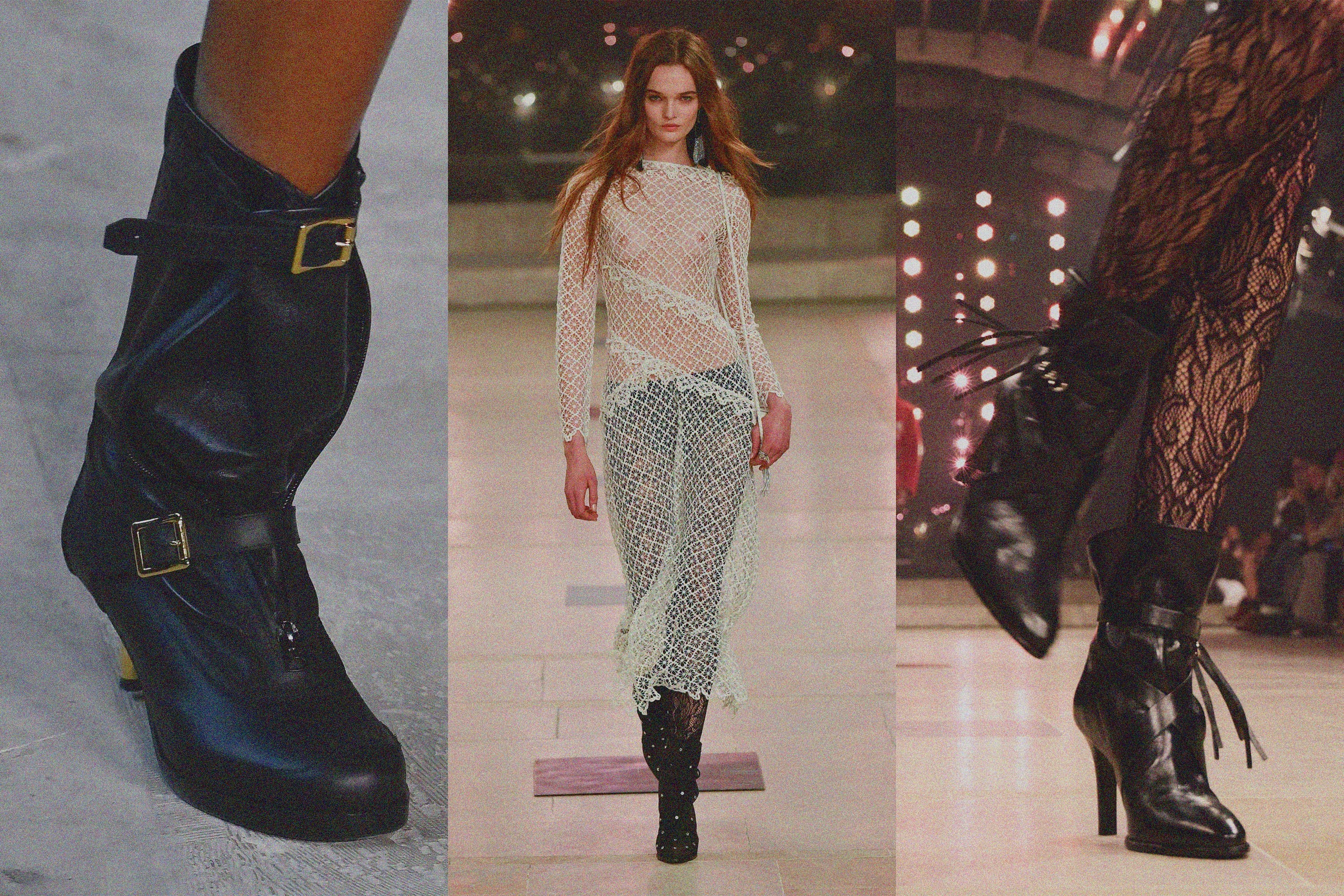 Getty ImagesAt brands like Isabel Marant and Sacai, the slouch was replaced with scrunch, where soft leather boots were scrunched at the ankle with leather cords and buckles, adding a relaxed boho energy to looks. Silhouettes that are not knee-high nor ankle boots have been emerging this season, perfect for pant-tucking!