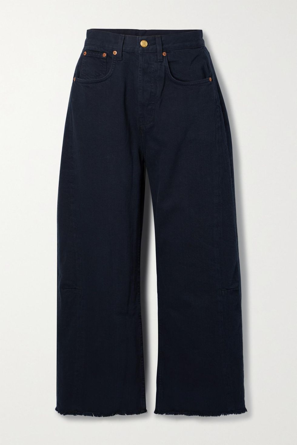 Regardless of what happens in fashion, denim is always in style. It's the silhouettes, washes, and rises that fluctuate throughout the years. According to Krys Ayala, the women's senior denim designer at AG, "Fall 2021 is all about the leg proportions—leave the skinnies in the closet and explore those wider leg shapes." She emphasizes that timeless straight-leg styles are still in fashion, while bootcut iterations are making a comeback. Along with this, we're seeing a resurgence in dark washes, as well. Continue scrolling to discover styles that meet all your denim needs this season.