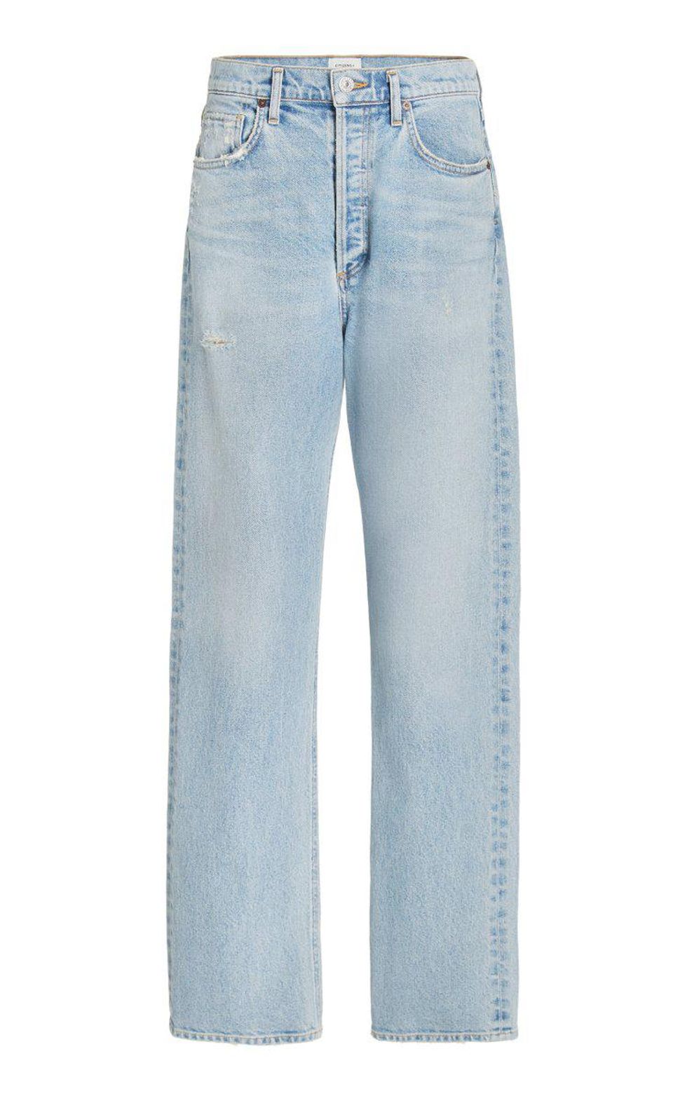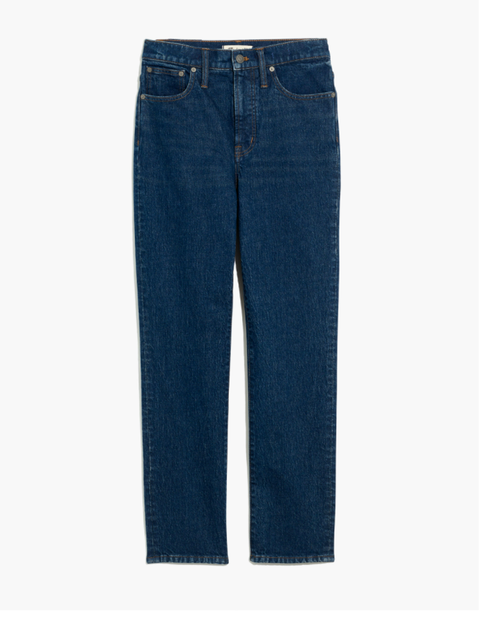 A straight leg denim silhouette isn't a trend per se—it's always in fashion.