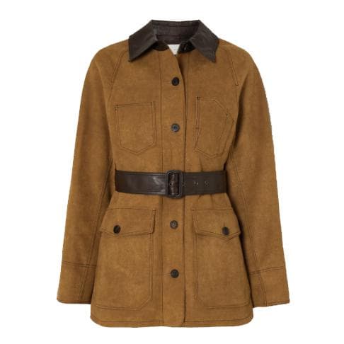 Belted Faux Leather-trimmed Faux Suede Jacket