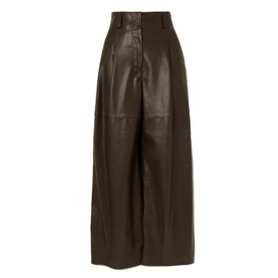 Pleated Faux Leather Wide-leg Pants