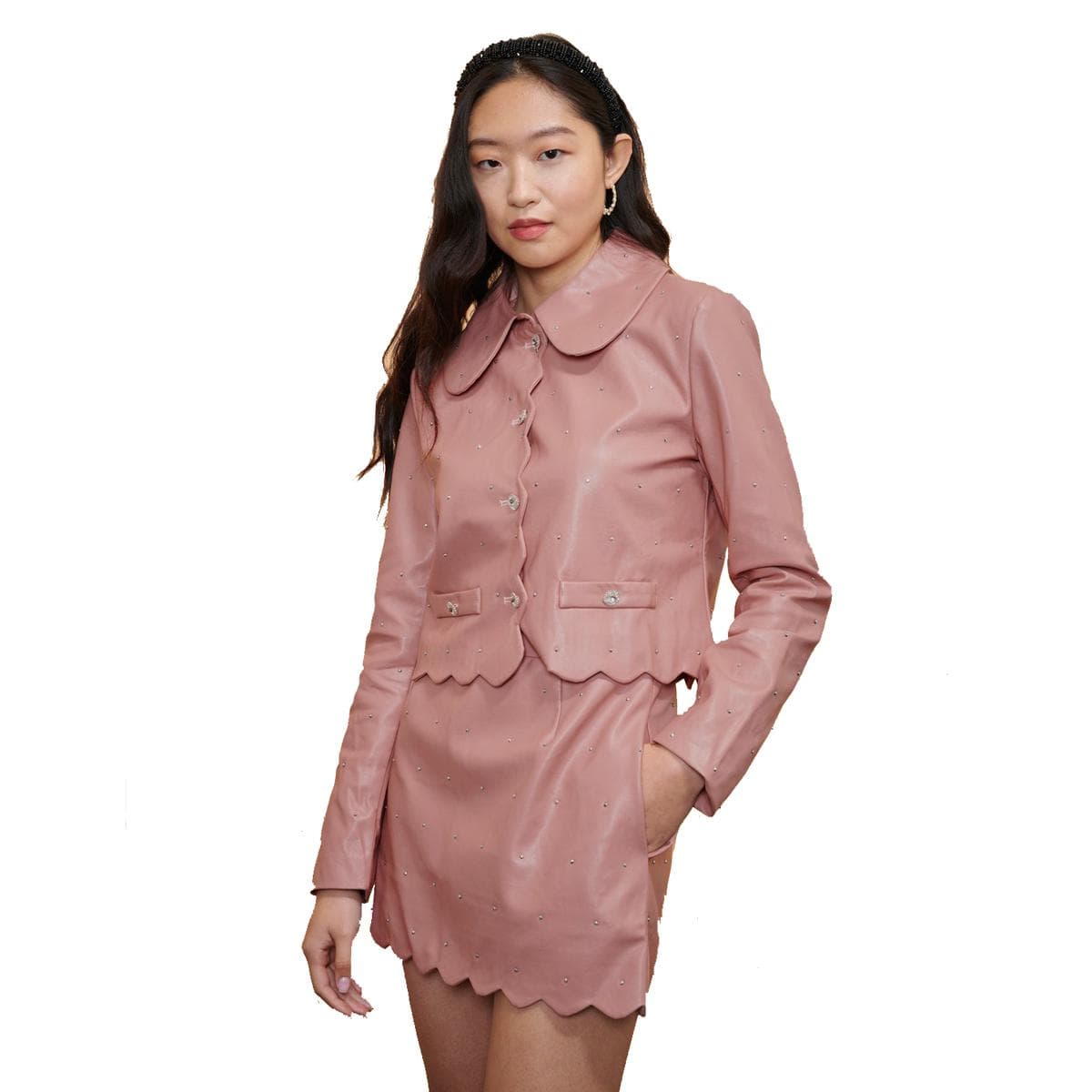 Faux Leather Blazer with Buttons