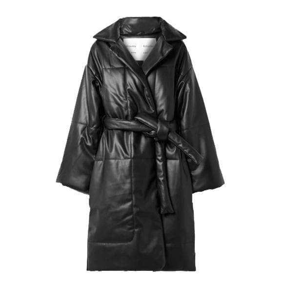 Belted Quilted Faux Leather Coat