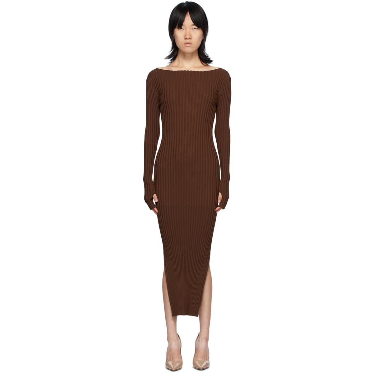 Open-back Ribbed-knit Maxi Dress