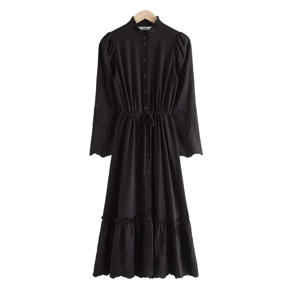 Embroidered Button Up Scallop Midi Dress